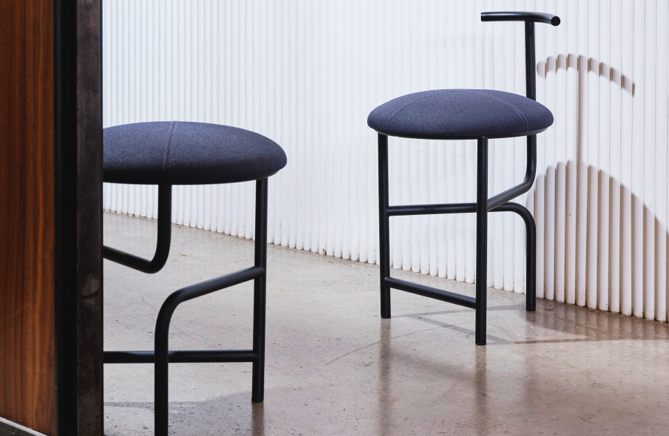 Blend系列是一張由黑色金屬框架和胡桃木/橡木座組成的三角吧臺(tái)凳,軟包底座也有標(biāo)準(zhǔn)皮革和不同布料的選擇。Blend設(shè)計(jì)的最主要特征在于腿部,卻隱去了中間那根。僅這一微小的結(jié)構(gòu)變化便可以徹底改變支撐力的方向和作用方式, 僅留下一根橫梁用來(lái)擱腳。