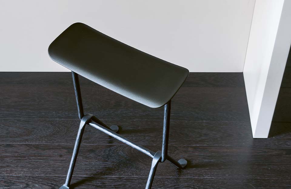 鍛造,一種用來塑造鐵的過程,在錘和砧之間擠壓,它的歷史可以追溯到幾千年前。古往今來,這種技術(shù)已經(jīng)被用來創(chuàng)造無數(shù)的日常用品和裝飾artefacts。Officina系列探索了建立新創(chuàng)意的可能性用古老的制造工藝,如鐵鍛造,學(xué)習(xí)語言。藏品包括桌椅、矮桌椅、矮椅、凳子、長(zhǎng)凳等配件系列(從衣架到行李架到大燭臺(tái)和鏡子)還有軟墊家具(兩把扶手椅、一個(gè)軟腳凳、兩個(gè)和三個(gè)座位的沙發(fā))。