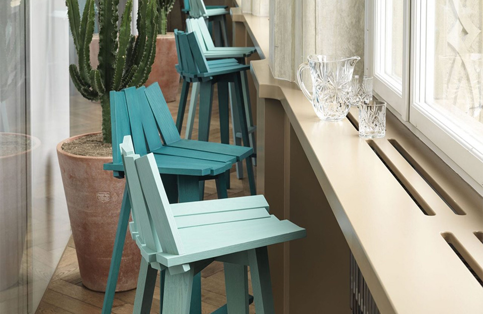Frank是一種灰凳,根據(jù)樣品卡,有各種顏色的天然或彩色木材可供選擇。這把凳子的特殊結(jié)構(gòu)由一塊精心切割、加工和交叉的實(shí)木制成,形成了一個外觀熟悉的諷刺凳子。