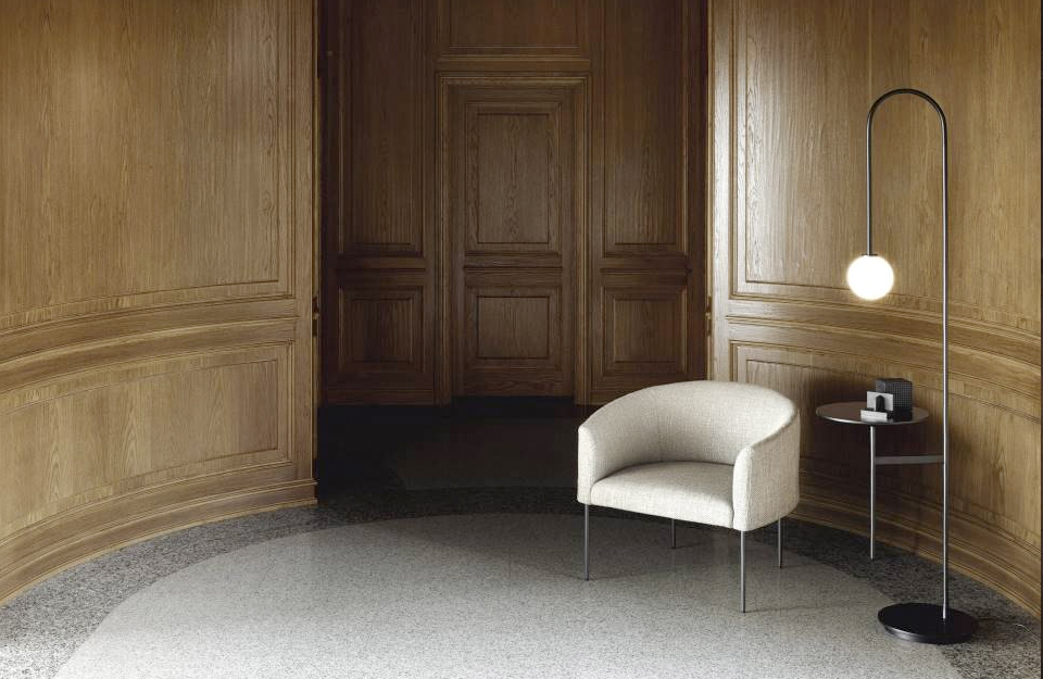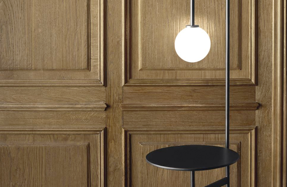 室內使用落地燈,帶漫射光,集成小桌子,配備無線充電和觸摸燈開關。