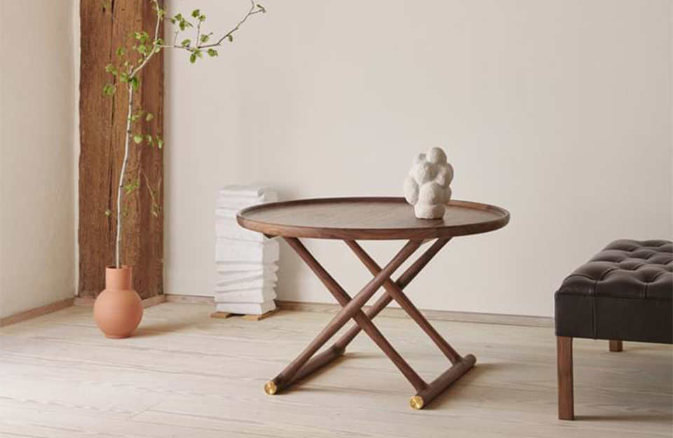 這款ML10097埃及桌是由Mogens Lassen設(shè)計(jì)的,桌面下方有一個(gè)小的黃銅滑動(dòng)插銷,可以輕松折疊存放。這是一個(gè)靈活的咖啡桌,典型的功能主義存在于古典家具類型。