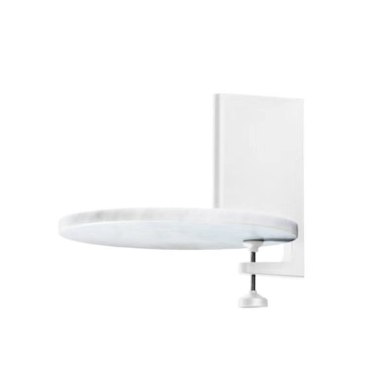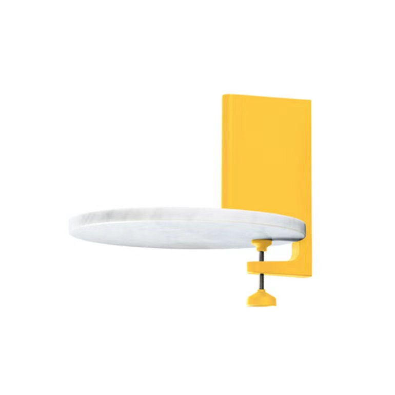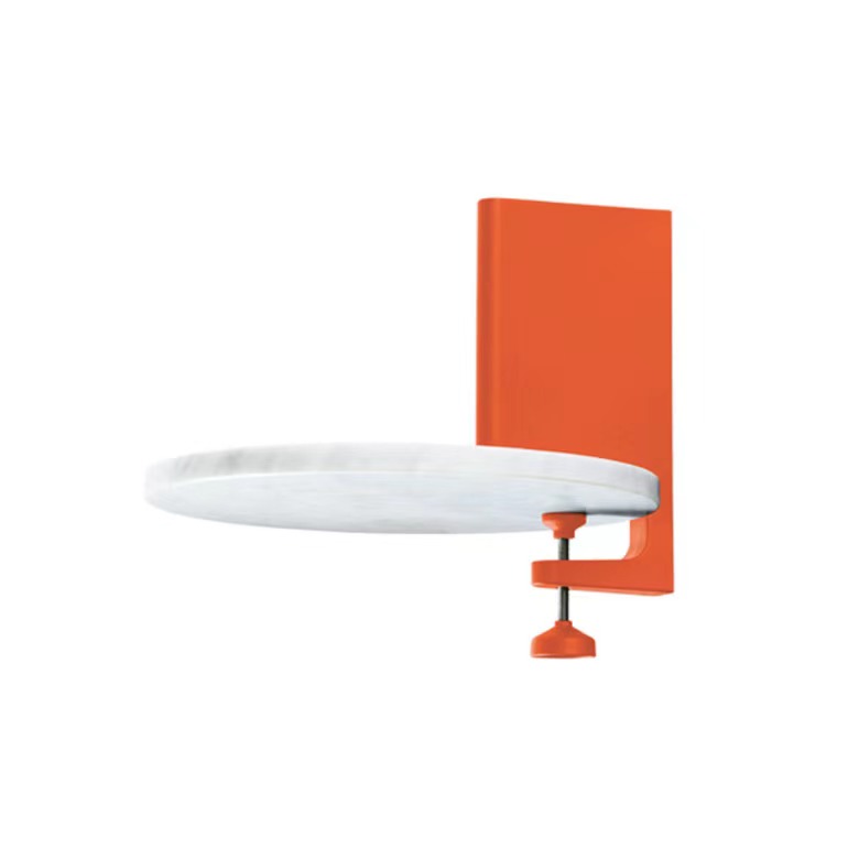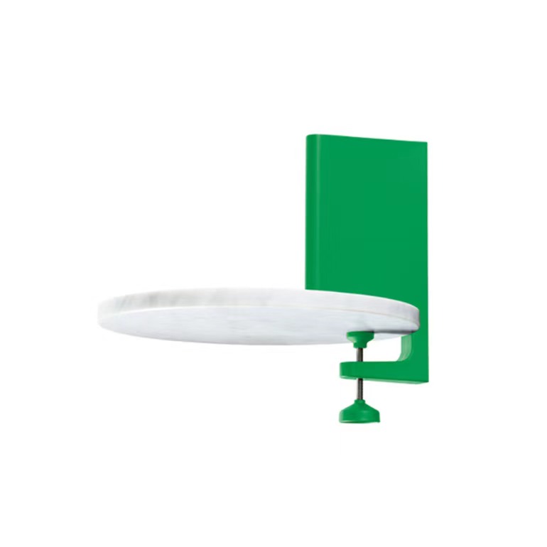 材料:聚丙烯混合玻璃纖維卡夾。聚酯漆鋼板、櫸木實木和卡拉拉大理石臺板。