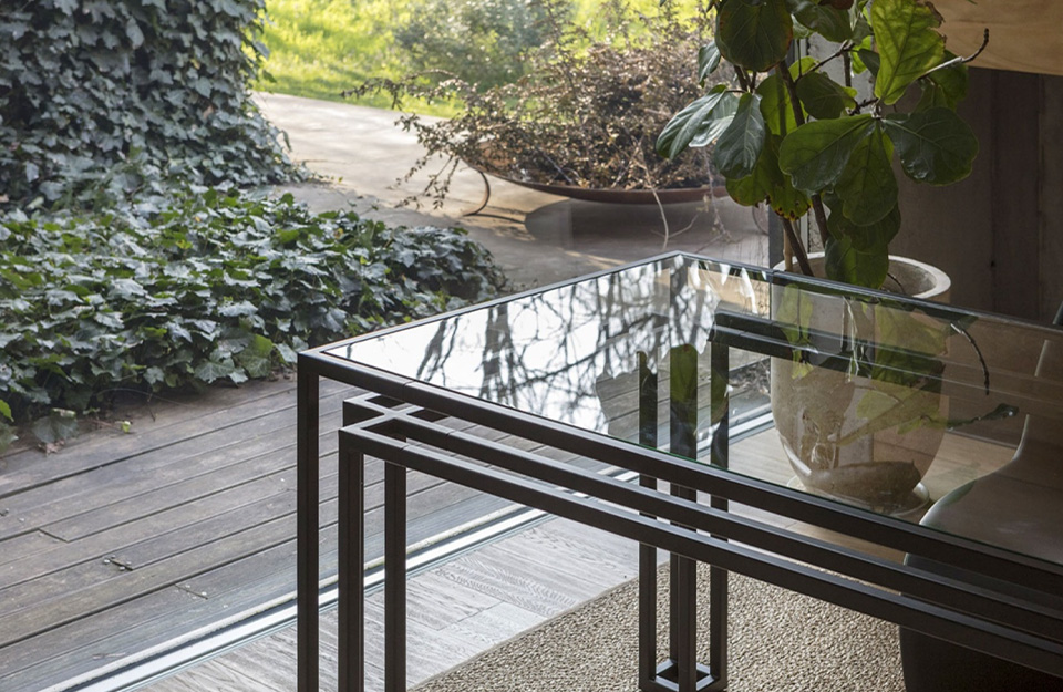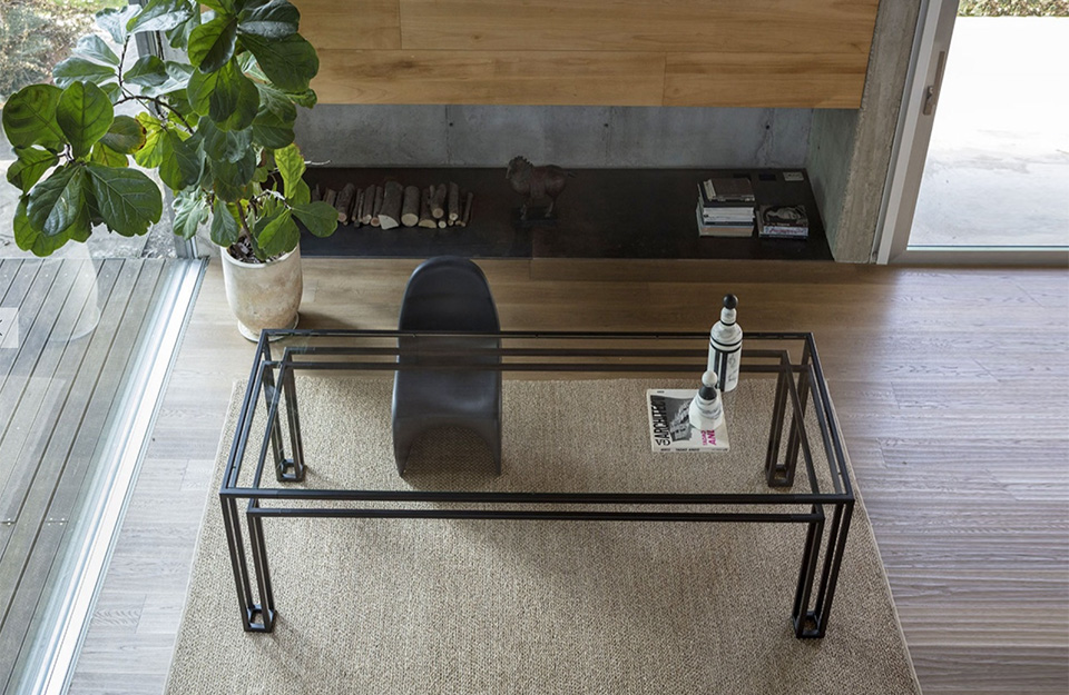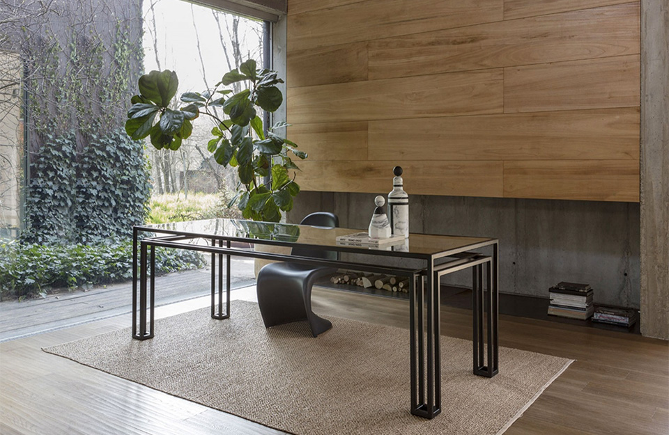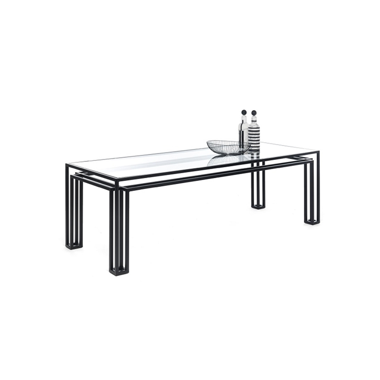熱線是一張帶金屬框架和玻璃頂部的桌子。該結(jié)構(gòu)有黑色或古銅色青銅可供選擇;頂部有透明玻璃、透明黑色玻璃或透明青銅玻璃。