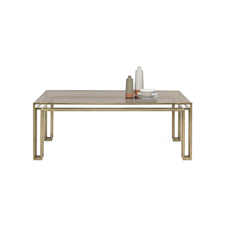 熱線是一張帶金屬框架和水晶頂部的桌子。該結(jié)構(gòu)有黑色或古銅色青銅色;頂部有透明玻璃或透明黑色玻璃,或透明青銅玻璃。
