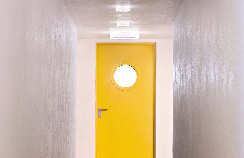 墻壁或天花板固定裝置,提供適合室內(nèi)和室外使用的漫射照明。硅膠彈性體灰塵和防水密封。壓鑄鋁燈體和墻壁配件。擴(kuò)散器有不透明玻璃(IP40)或聚碳酸酯(IP44)。