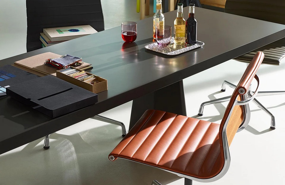 Jean Prouvé 最初為巴黎附近安東尼的大學城設計了 Trapèze 桌子。鋼板腿的梯形形狀為這個名字提供了靈感,也賦予了桌子獨特的特征。