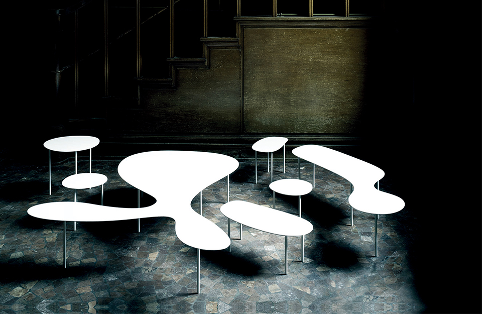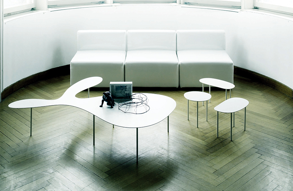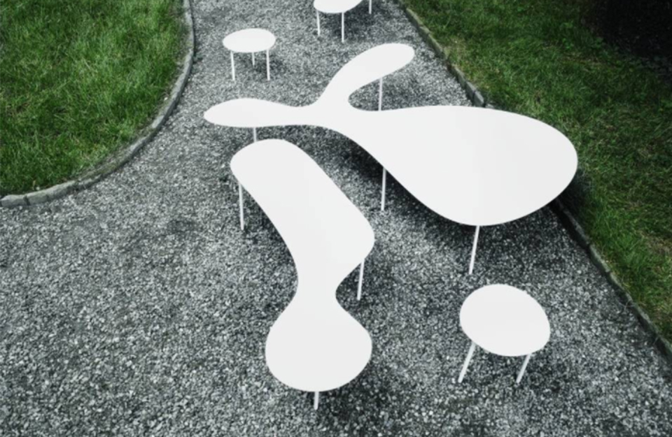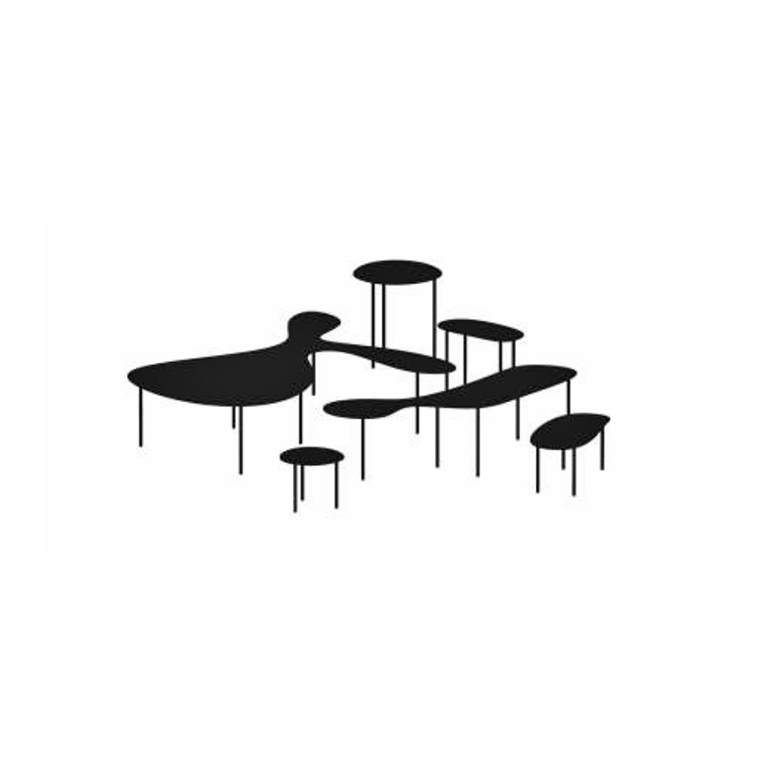 家庭7表的不同形狀和大小,可供兩者室內(nèi)和室外。頂部采用3mm激光切割鋼板,腿部采用管狀鋼?12mm擰到頂部。地板支撐由聚氯乙烯tips固定。