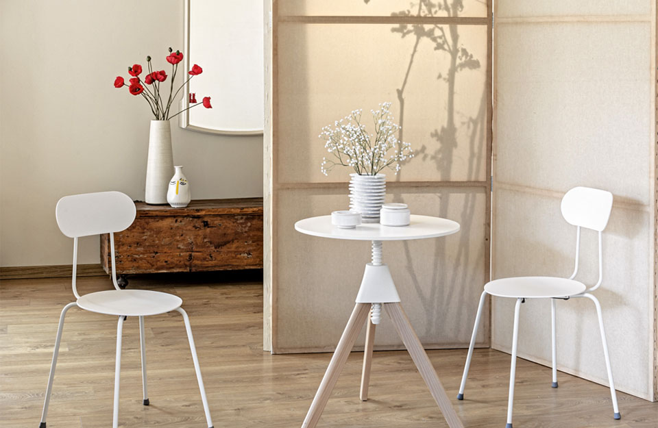 材料:實(shí)心山毛櫸框架天然或彩繪;聚丙烯接頭和螺釘,并添加玻璃纖維。HPL的頂部。