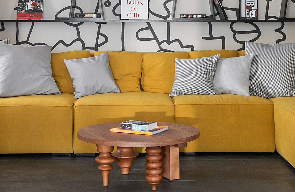 Jaime使用相同的腿設(shè)計了三張桌面,將它們轉(zhuǎn)換為功能性的雕塑中心件。