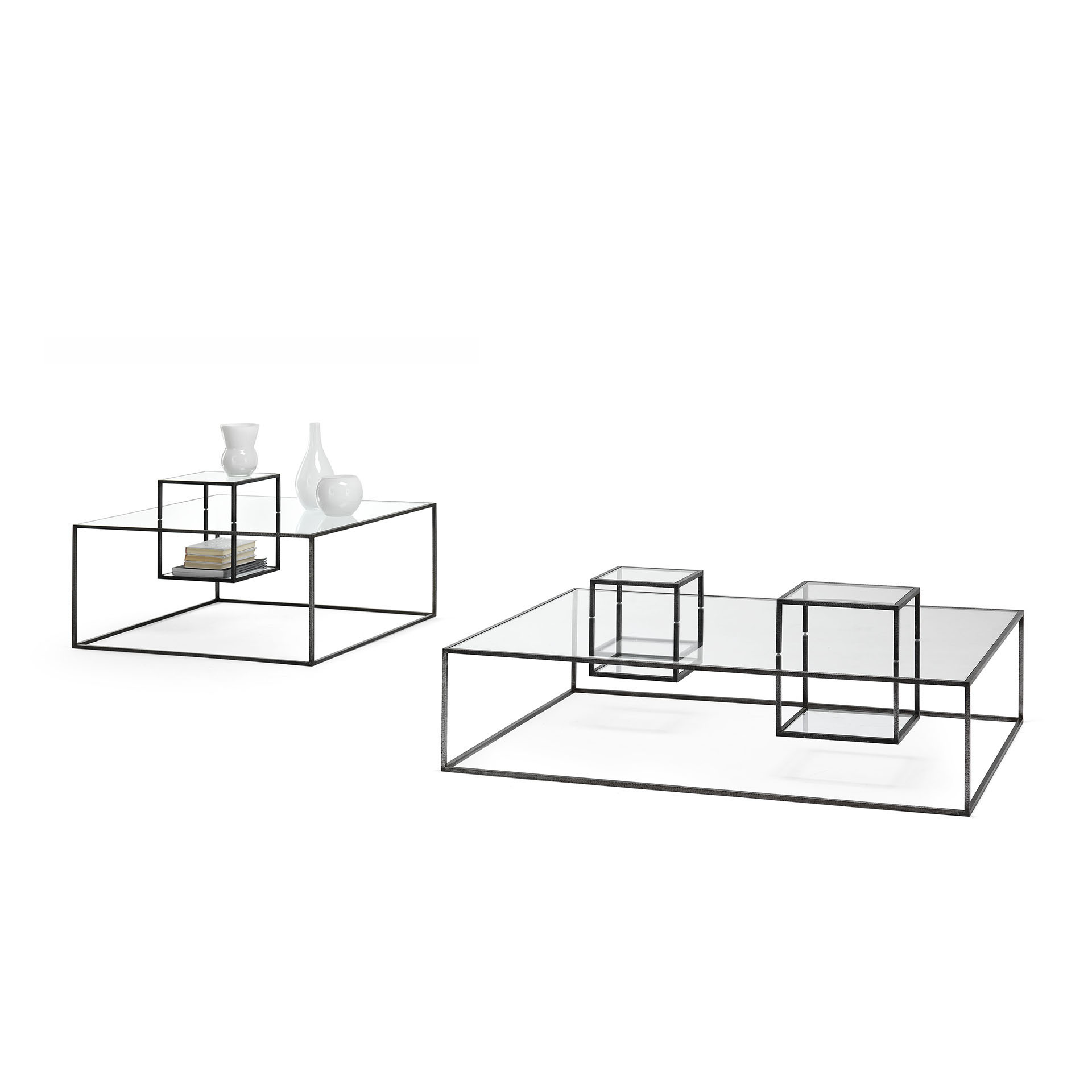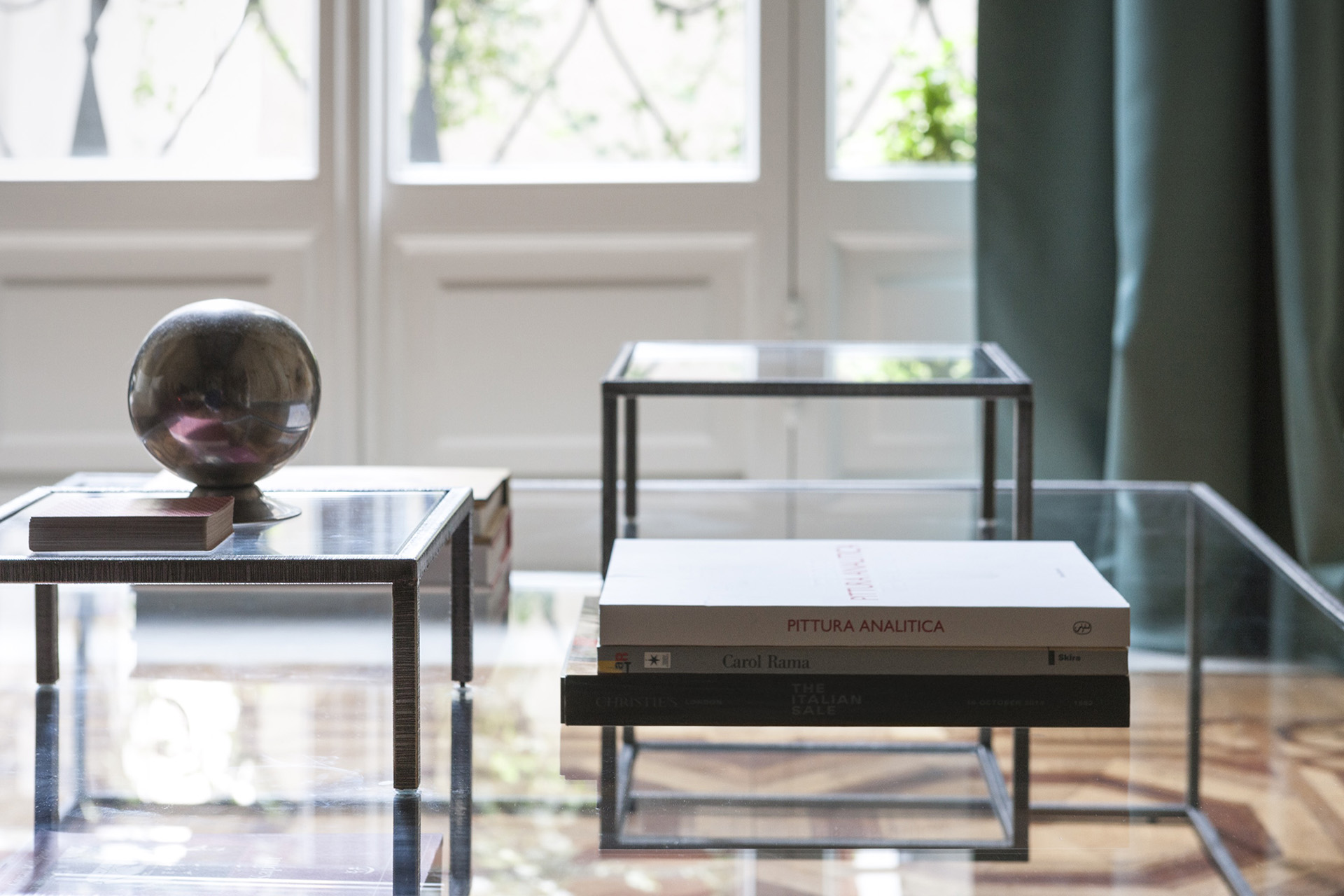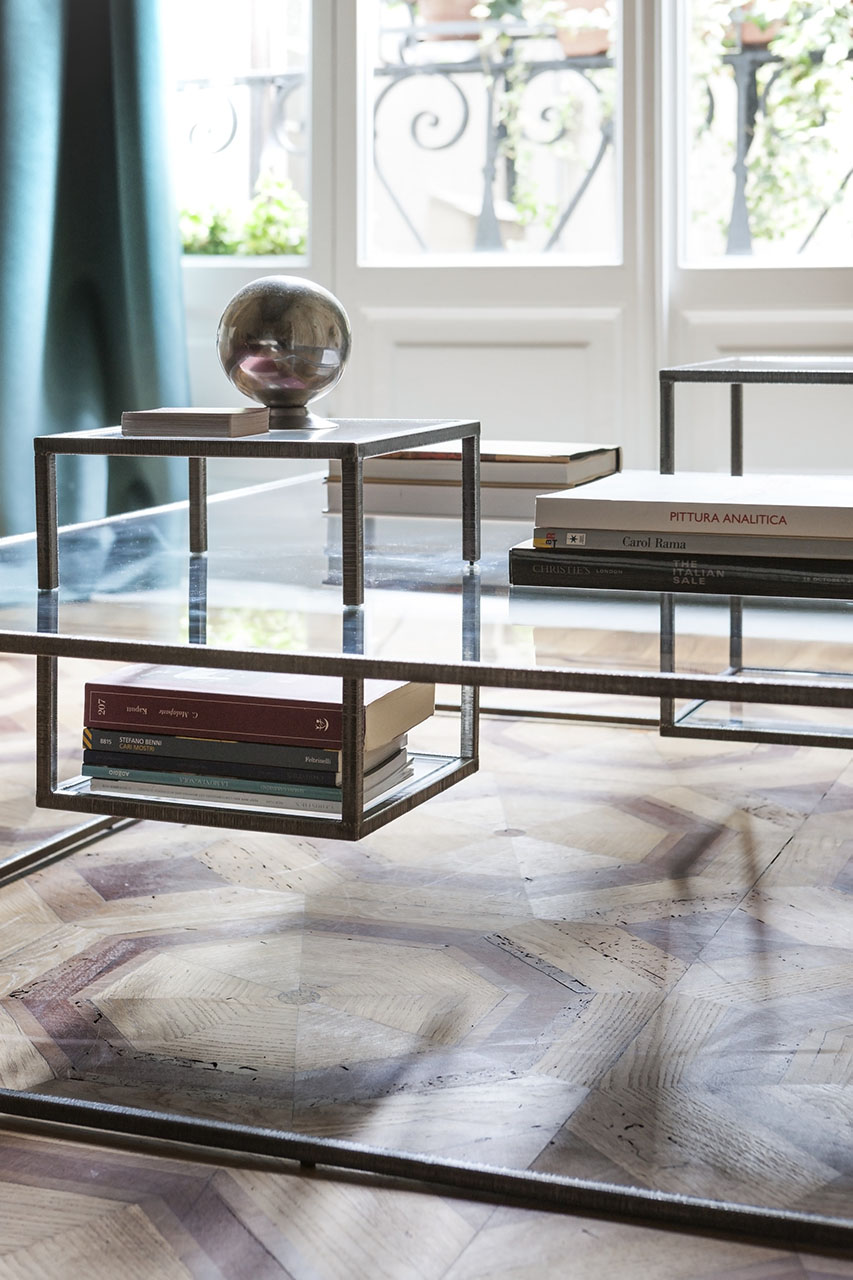Illusioni 是一款采用黑鐵結(jié)構(gòu)和透明玻璃桌面的咖啡桌。體積似乎在波動,就像在沒有重力的情況下一樣;細長的結(jié)構(gòu)確立了其輕盈而基本的線條。