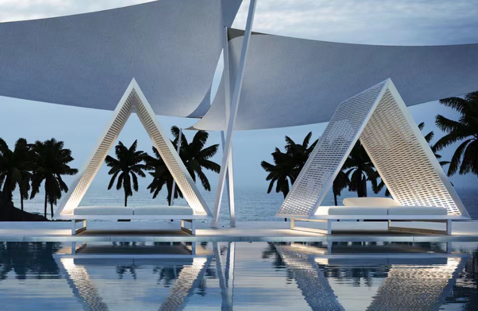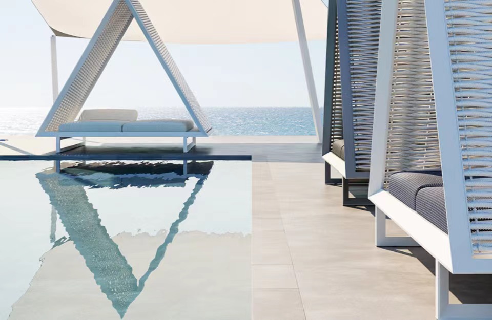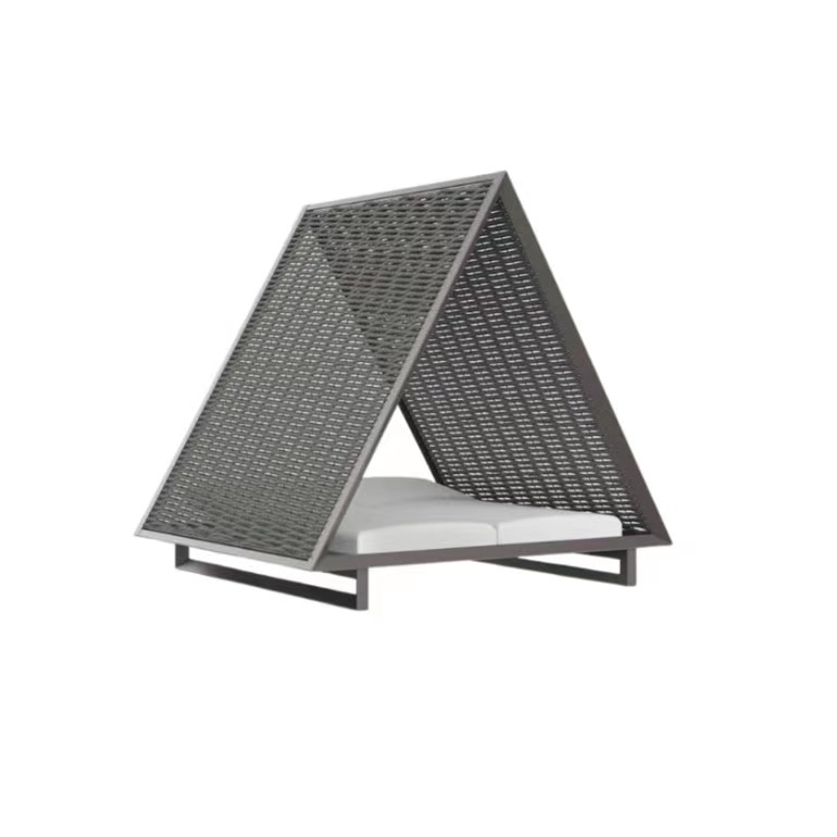 葡萄園沙發(fā)床系列,設(shè)計(jì)者拉蒙·埃斯特韋為馮多姆,誕生于避難所的想法。它的山墻屋頂讓人想起傳統(tǒng)建筑;這件作品由鋁制結(jié)構(gòu)和雙躺椅床墊組成,可確保舒適和多功能的沙發(fā)床。