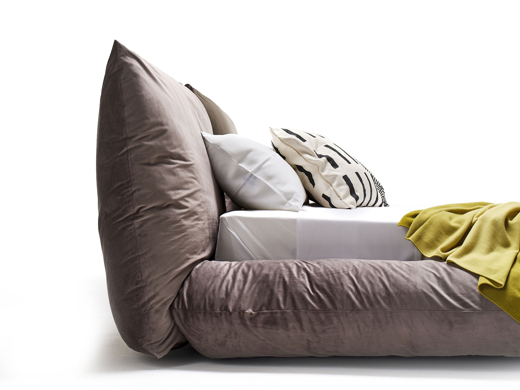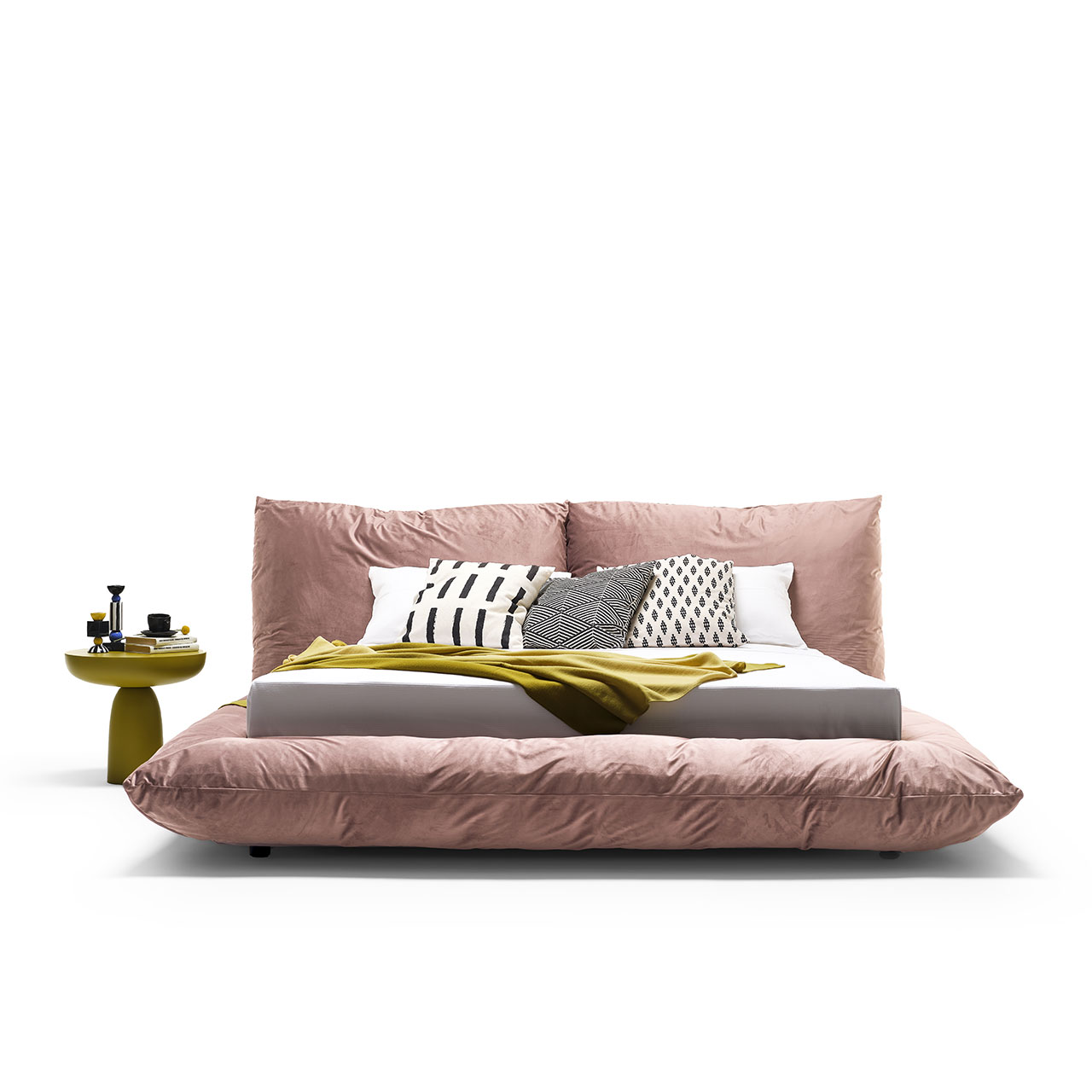 軟墊結(jié)構(gòu)雙人床,線條柔和,體積大、舒適且令人放心。睡眠區(qū)無可爭議的主角。床元素、靠墊(通常是配件)的極度簡化成為承重元素,采用獨特的形狀和折疊,具有連續(xù)性和和諧性。