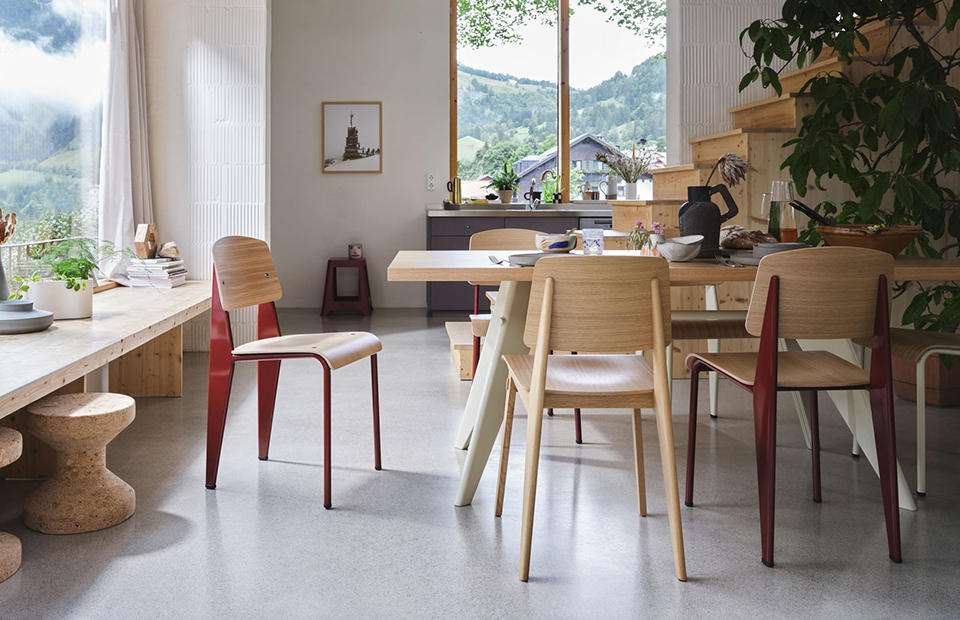 Jean Prouvé 的 Standard 椅子已發(fā)展成為法國(guó)“建筑師”最著名的經(jīng)典作品之一。這款低調(diào)的標(biāo)志性椅子的座椅和靠背有各種木材可供選擇,金屬框架有不同的顏色。