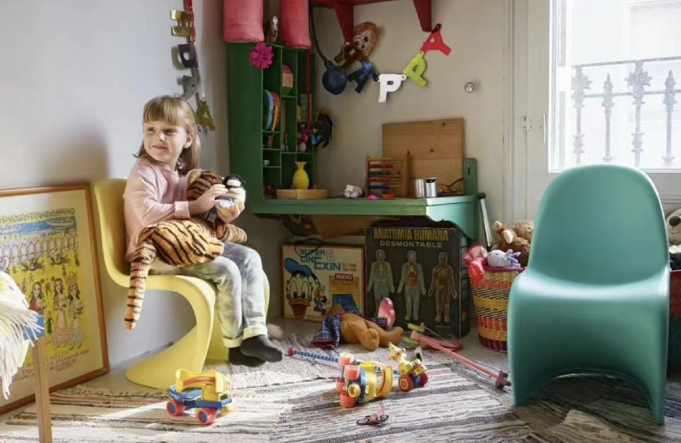 在材料和形狀上與原版相同,兒童版比全尺寸的潘通椅小了大約 25 %。這使得 Panton Junior 成為兒童理想的座椅。