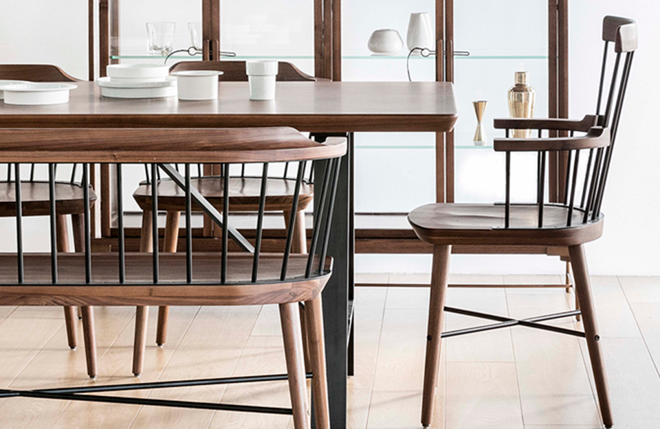 新的擴展交換系列是永恒和現(xiàn)代的,包括一張餐桌、長凳和一系列額外的椅子。