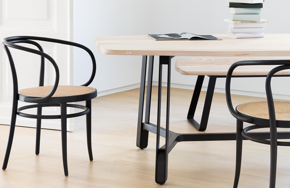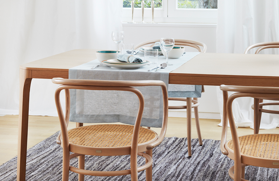 這款優(yōu)雅的彎木經(jīng)典椅在結(jié)構(gòu)和制作上堪稱杰作:構(gòu)成靠背和扶手的凸出框架是由一塊實心山毛櫸木彎曲而成的。與所有彎曲木椅子的最初型號214號一樣,210R號椅子也只由六個部分組成。由于其美學(xué)上的縮減與有機形態(tài)的結(jié)合,它看起來幾乎就像一座雕塑。瑞士建筑師勒-柯布西耶(Le Corbusier)對它情有獨鐘,并在他的許多建筑中使用它,例如1927年斯圖加特的魏森霍夫莊園。他確認(rèn)"......這把椅子具有高貴的氣質(zhì)"。它是在我們弗蘭肯伯格的工廠生產(chǎn)的。 一件好家具的生命力來自于它的多功能性。
