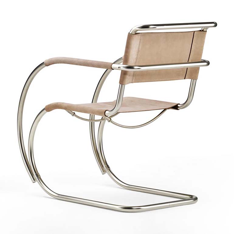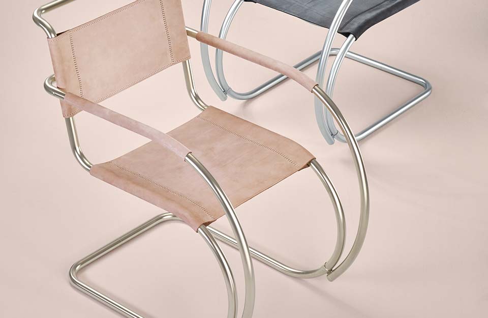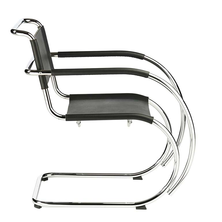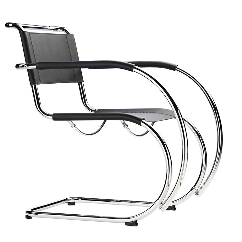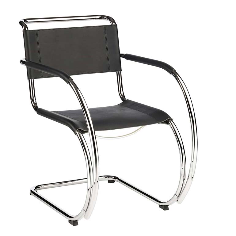 技術變成了家具;一項引人注目的發(fā)明變成了優(yōu)雅的室內(nèi)設計對象。路德維?!っ芩埂し兜铝_(Ludwig Mies van der Rohe)是第一個為懸臂式座椅提供美學上的輕盈感,并將其與環(huán)境聯(lián)系起來的曲線。在他組織的魏森霍夫莊園展覽的籌備過程中,由于馬特·斯塔姆(Mart Stam),密斯·范德羅(Mies van der Rohe)熟悉了懸臂椅的原理。盡管這種方法可能很新,但Mies van der Rohe對Stam的首次實施并不滿意。他立即用自己的美學解決方案回應了技術創(chuàng)新,并于1927年提出。S 533是最早的懸臂椅之一,它以其大而優(yōu)雅的彎曲圓鋼管形式定義了周圍的環(huán)境。S 533的特點是有意限制使用的材料,線條優(yōu)雅,效果透明。