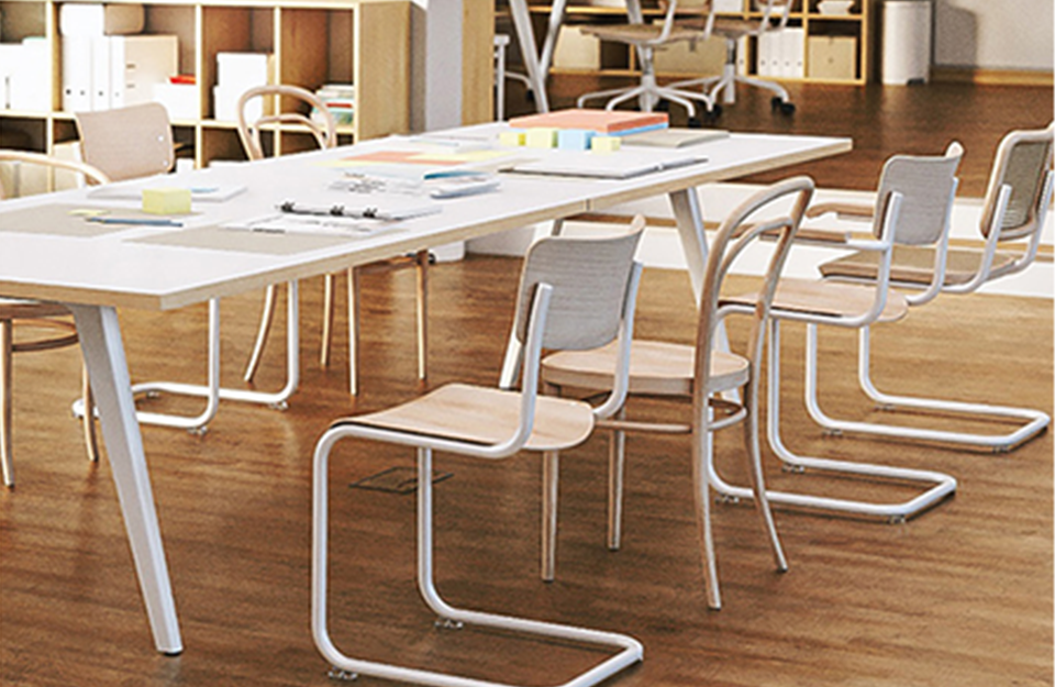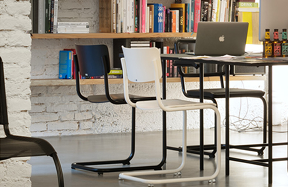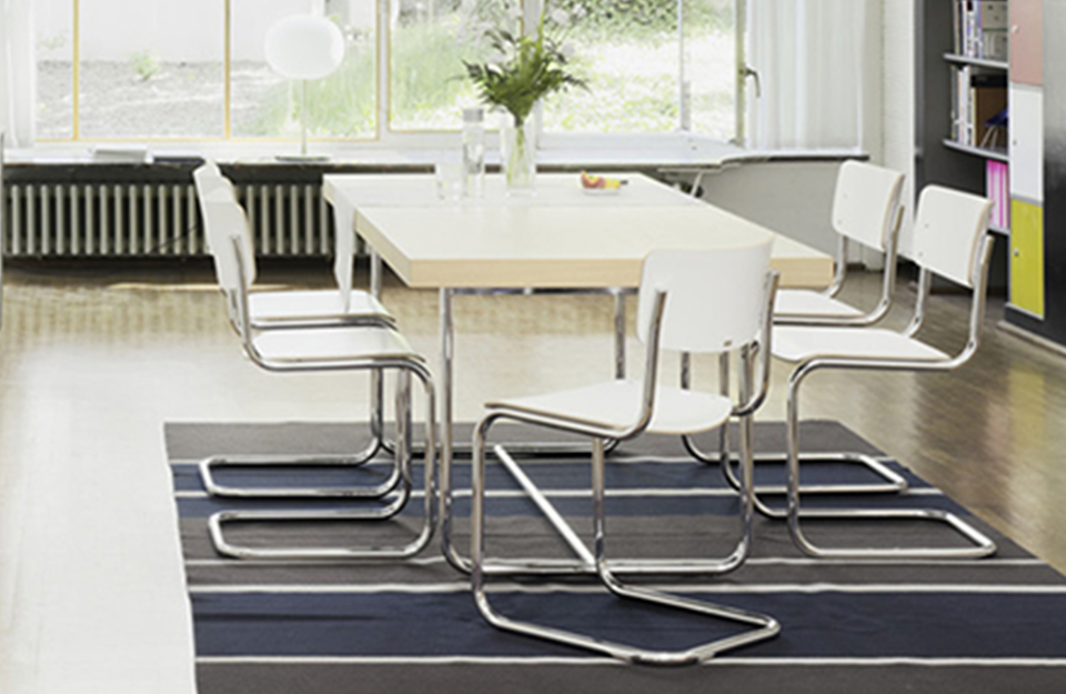 簡潔處處展現(xiàn)其效果:Mart Stam移除了家具的后腿,幾個世紀(jì)以來,這些家具都是基于同樣的原則創(chuàng)作的。通過進(jìn)化完善,在任何需要低調(diào)和質(zhì)量的地方,一個看起來都很好的物體。對于他的家具設(shè)計,馬特·斯塔姆(Mart Stam)高度重視實用性和樸素的美學(xué)以及材料。這種方式帶來了直線形狀、清晰的結(jié)構(gòu)和更好的坐姿舒適度。Stam通過將管狀鋼框架與座椅和靠背的模制木質(zhì)元件結(jié)合,實現(xiàn)了懸臂椅S 43的最大可能減少。這把懸臂椅的純粹、克制的形式使其成為現(xiàn)代主義精神下的典范設(shè)計。如今,Thonet擁有這把完全沒有后腿的立方體椅子的藝術(shù)版權(quán)。1933年,位于萊比錫的德國國家圖書館的自然科學(xué)閱覽廳配備了懸臂椅S 43。