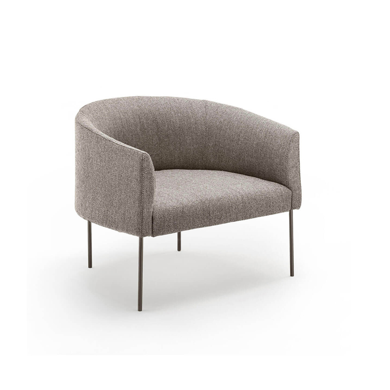 扶手椅的靠背結(jié)構(gòu)為鋼制,嵌入冷發(fā)泡聚氨酯,座椅為管狀鋼截面,20×20mm,用覆蓋橡膠的彈性帶懸掛,嵌入冷發(fā)泡聚氨酯,并用鋼板固定在靠背結(jié)構(gòu)上。沙發(fā)靠背結(jié)構(gòu)為浸沒式鋼結(jié)構(gòu),采用冷發(fā)泡聚氨酯,座椅采用20×20mm的管狀鋼截面,用彈性帶懸掛帶捆扎在覆蓋橡膠中,軟墊采用聚氨酯泡沫,并固定靠背結(jié)構(gòu)采用鋼板。兩種護(hù)套均由100%聚醚制成,與熱固定聚酰胺天鵝絨支架連接,聚酯纖維經(jīng)過針灸處理,樹脂與聚酰胺天鵝絨支架連接。鋼腳?18mm,涂有環(huán)氧粉末灰色炮彈,通過襯套擰到結(jié)構(gòu)靠背上。可調(diào)節(jié)的PVC黑色貼片??赏ㄟ^拉鏈和尼龍搭扣完全拆卸的皮革或織物內(nèi)飾。座椅深度:扶手椅60cm;沙發(fā)66厘米。