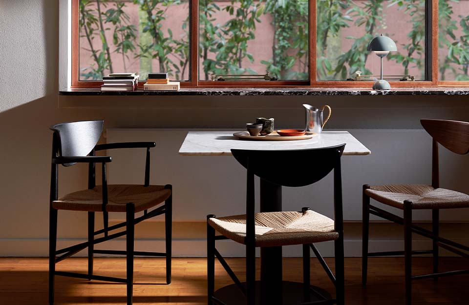 Hvidt & M?lgaard于1956年繪制的椅子是丹麥設計的權威作品。它依靠傳統(tǒng)的工藝技術,由有機材料制成,為任何空間帶來健康的誠實感。有油橡木、油胡桃木、肥皂橡木和最新添加的黑漆橡木可供選擇。它有兩個版本:一個帶扶手的寬型號,或者一個沒有。此外,還提供普雷斯科特黑色或干邑色皮革的墊子,以獲得更柔軟的座位體驗。