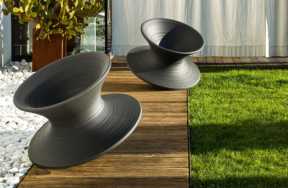 設(shè)計(jì):一張功能性椅子,由單一的側(cè)面形成,旋轉(zhuǎn)360度。