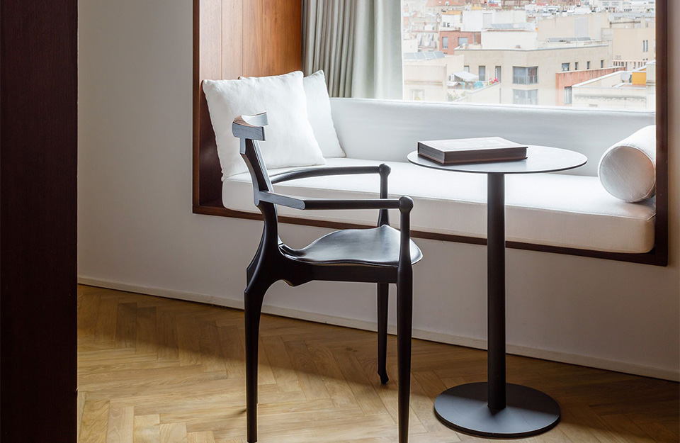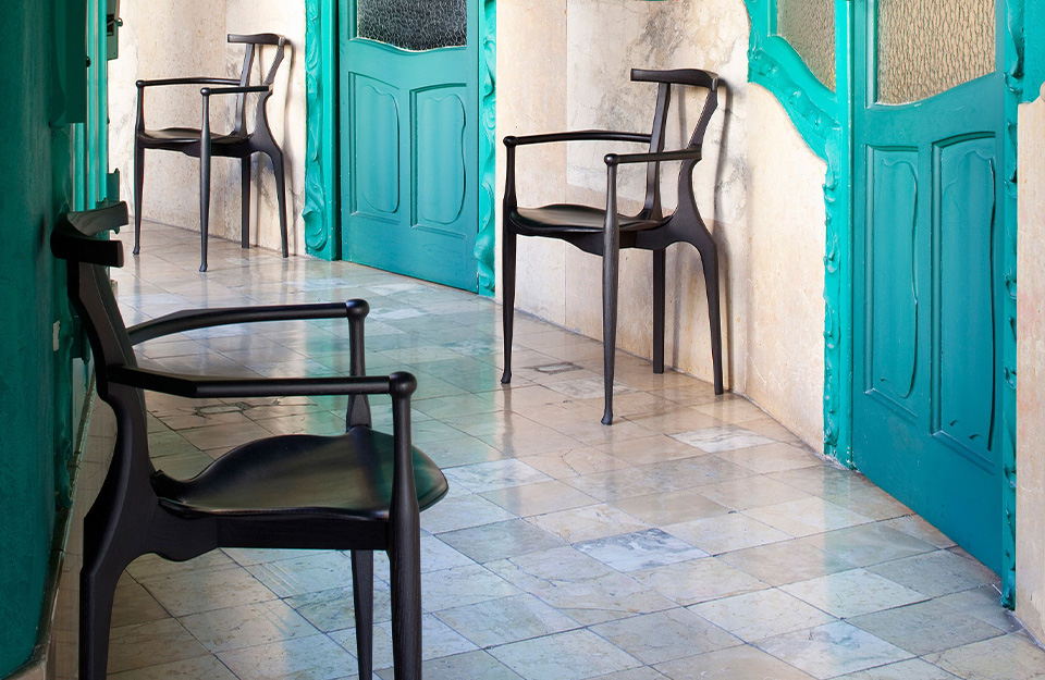 整體由木材和皮革制成。它的名字來自啟發(fā)設(shè)計(jì)師的影響:安東尼·高迪和卡洛·莫利諾。