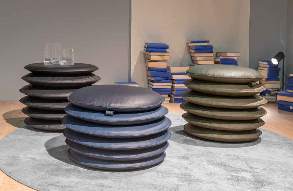 在設(shè)計(jì)階段中,設(shè)計(jì)師給DS-5050圓墊凳起了一個(gè)昵稱,把它親切的稱為“馬卡龍”,不禁令人聯(lián)想到著名的法國甜點(diǎn)。DS-5050也可作為茶幾桌使用,以精致的桌面替代柔軟的凳面。和作為圓墊凳使用時(shí)一樣,作為桌子使用時(shí),DS-5050的高度也可連續(xù)調(diào)節(jié)。