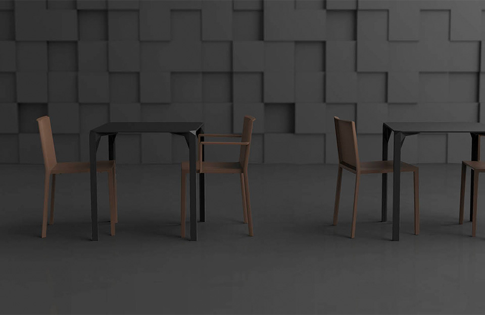 Ramón Esteve為Vondom設(shè)計(jì)的石英椅子和桌子系列的特點(diǎn)是其正交幾何形狀和三角形輪廓。由于其中一個(gè)頂點(diǎn)的線條,這件作品看起來非常輕。