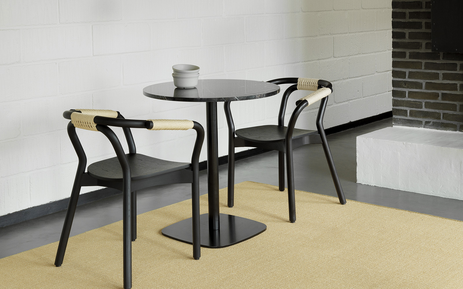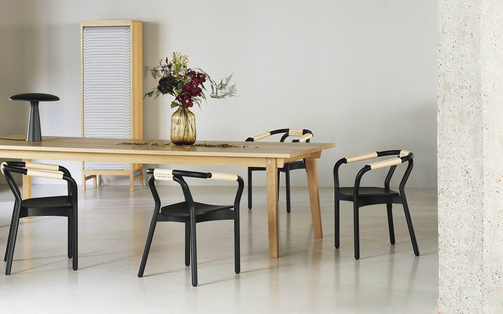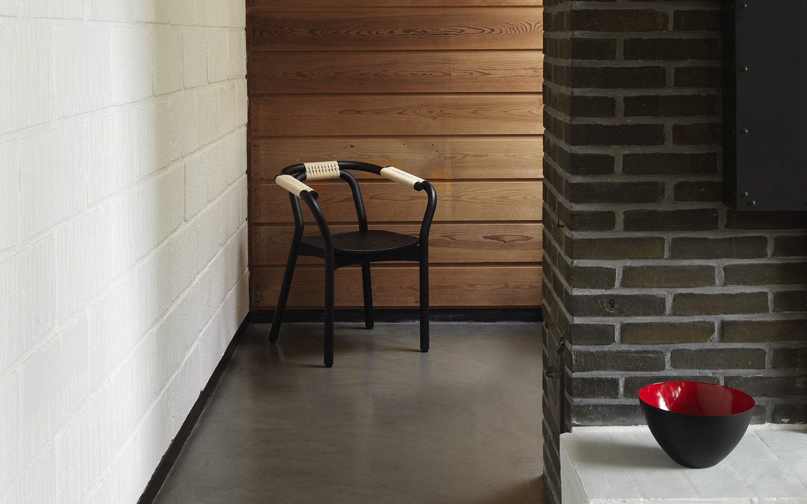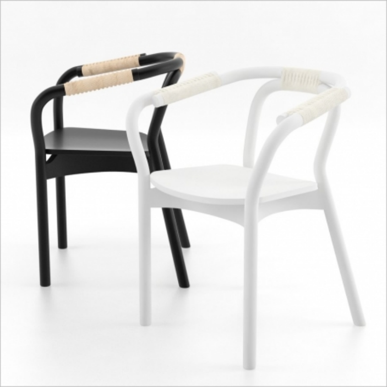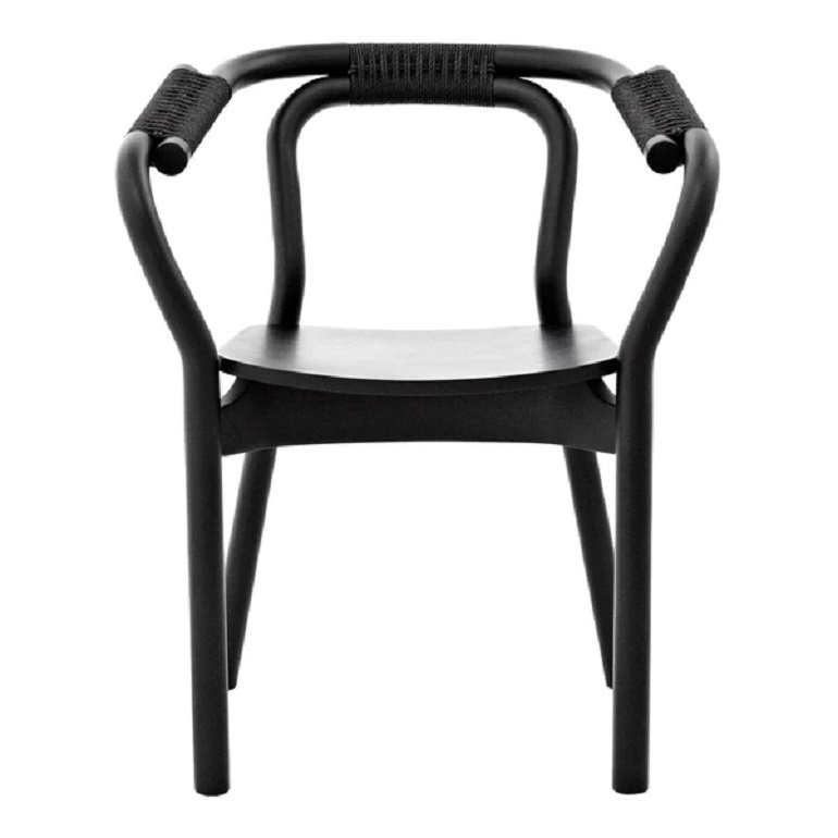 結(jié)椅由染色白蠟?zāi)局瞥?,靠背由紙繩接頭組裝而成,結(jié)椅交付組裝。