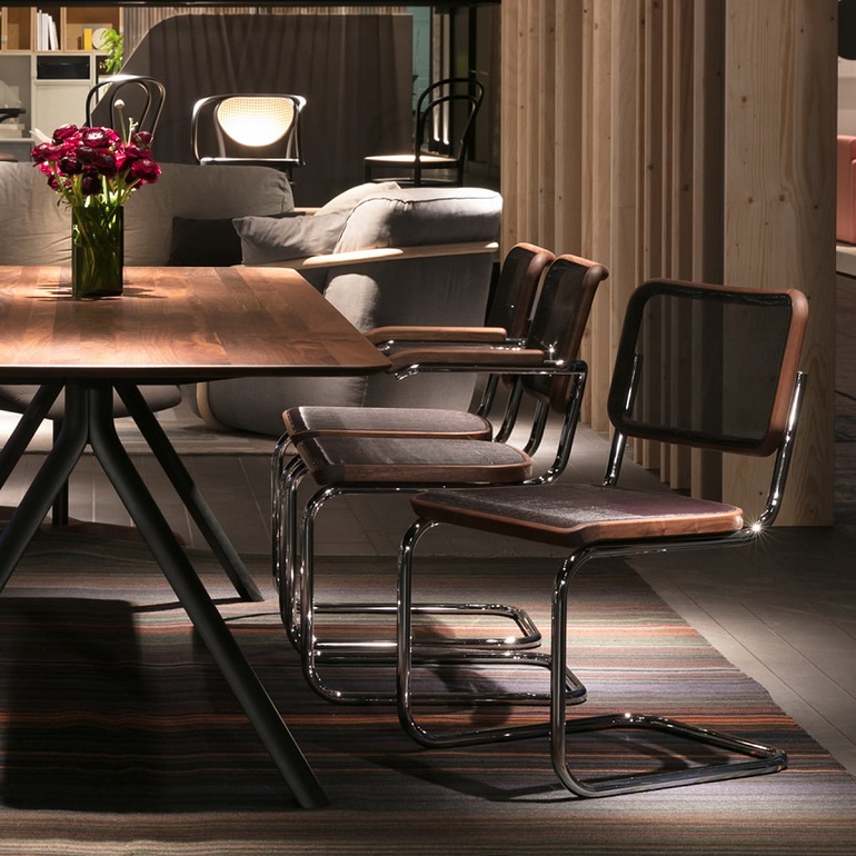 憑藉其多功能性,它們成為最暢銷的懸臂椅,至今仍然如此。Marcel Breuer 於 1928 年在柏林期間設計了 S 32 和 S 64。Thonet 自 1930 年以來一直生產這兩種型號。