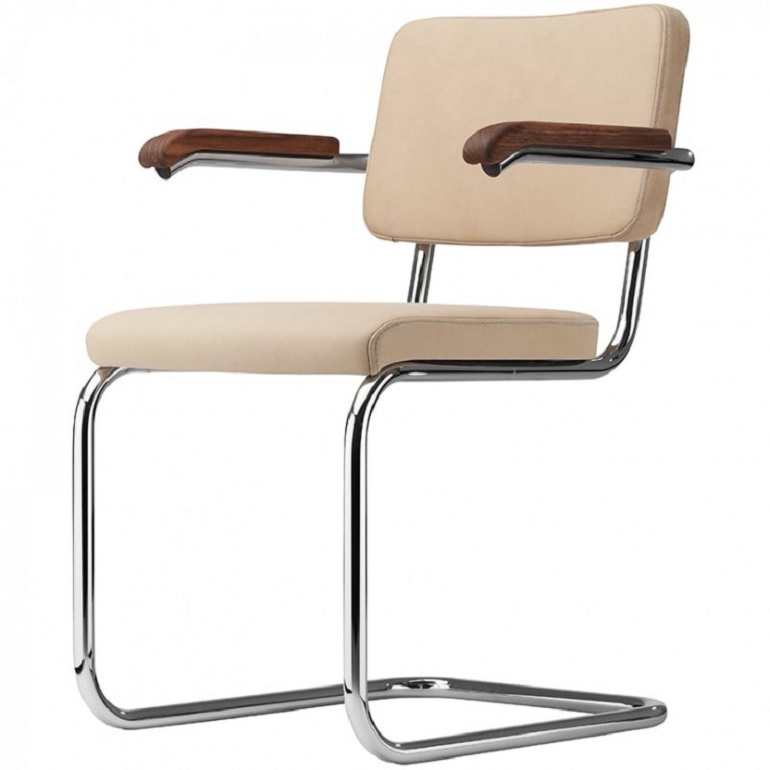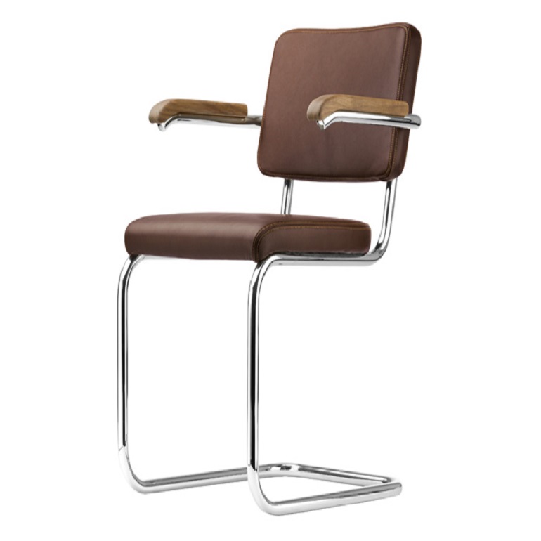 這款優(yōu)雅的懸臂椅與其基本形式 Thonet S32 沒有什么不同,但作為 S64,它有額外的扶手。