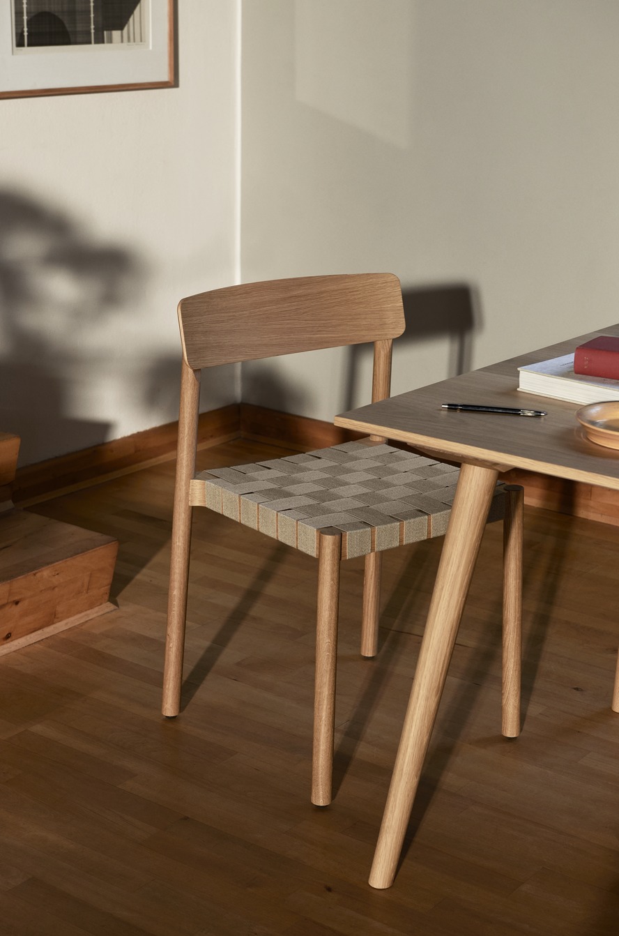這款可疊放的椅子以哥本哈根的貝蒂·南森劇院命名,有兩種版本:一種的座椅由天然亞麻纖維制成的裸露織帶制成,另一種則配有實木座椅。它提供三種現(xiàn)代框架顏色:黑色漆面白蠟木、栗色漆面白蠟木以及漆面實心橡木。
