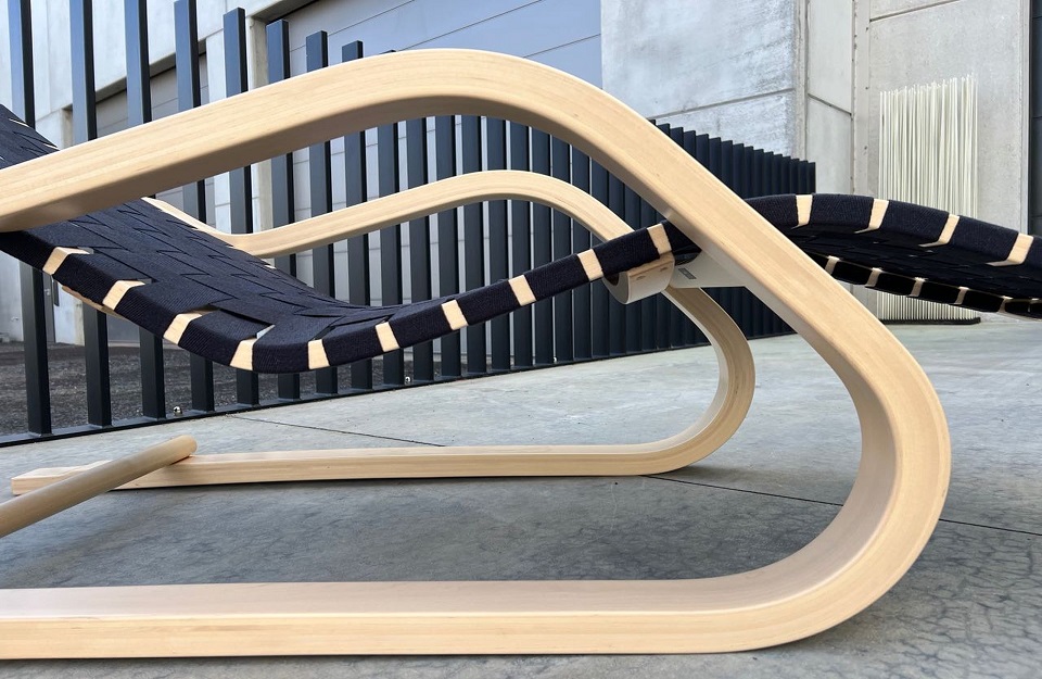 令人驚嘆的躺椅43進(jìn)一步探索了曲木制造的可能性。這是一種設(shè)計宣言,展示了樺木提供的穩(wěn)定性和靈活性,允許曲線和彎曲的強(qiáng)度與鋼管相當(dāng),但具有更溫暖的外觀休閑椅43采用懸臂式層壓樺木框架和工作室織帶結(jié)構(gòu),將美觀與卓越的舒適性融資框架。