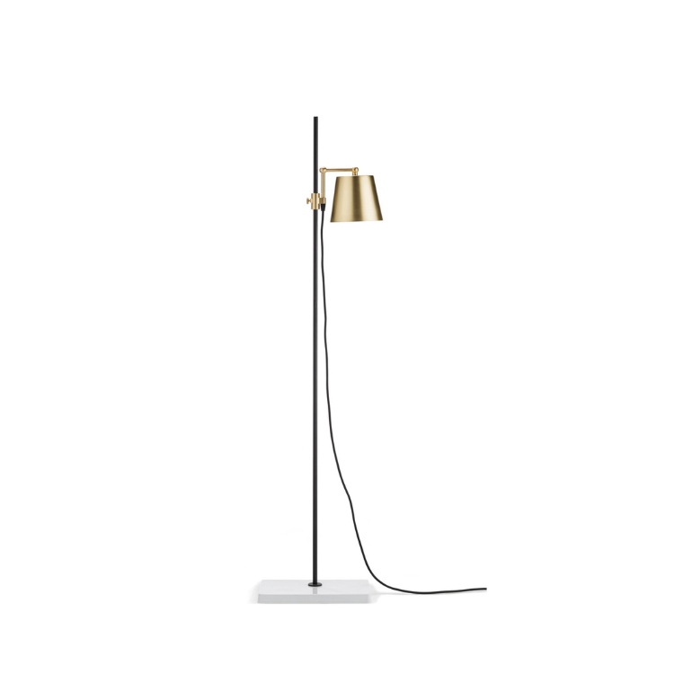 底座是瓷器,莖漆成鋼,燈罩和旋轉(zhuǎn)臂是黃銅。