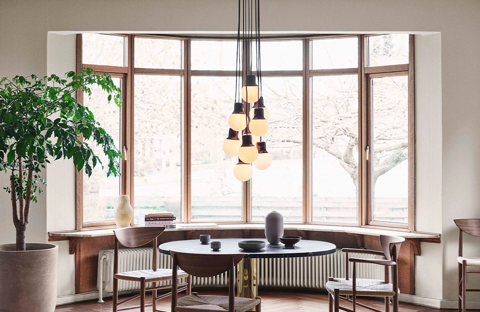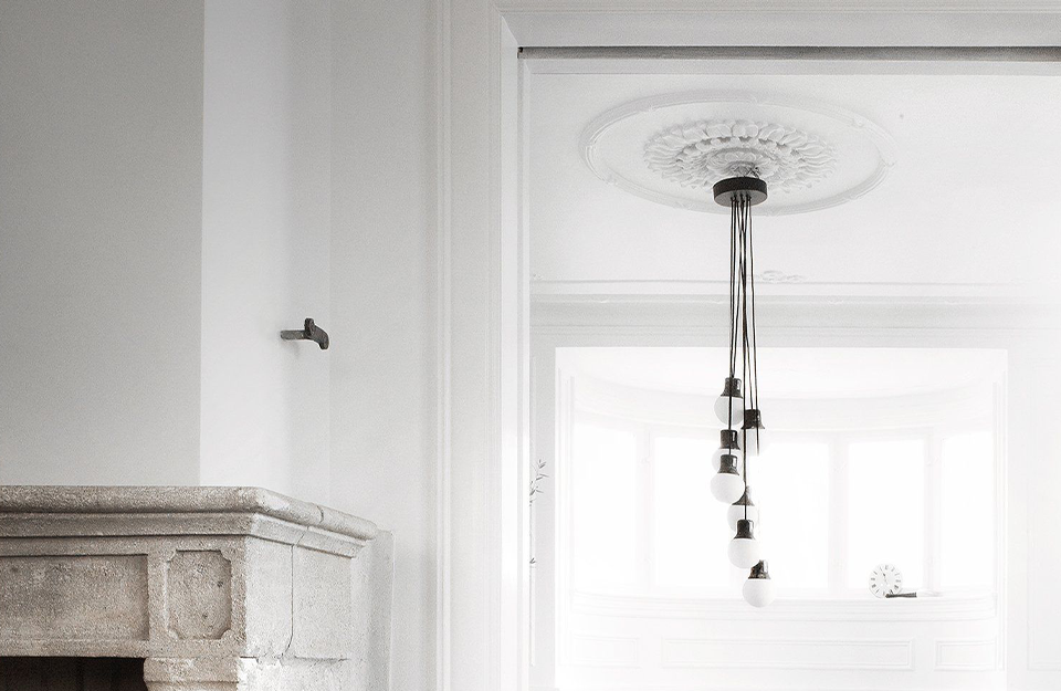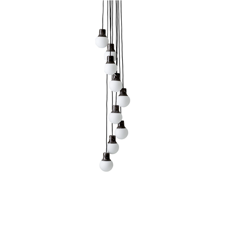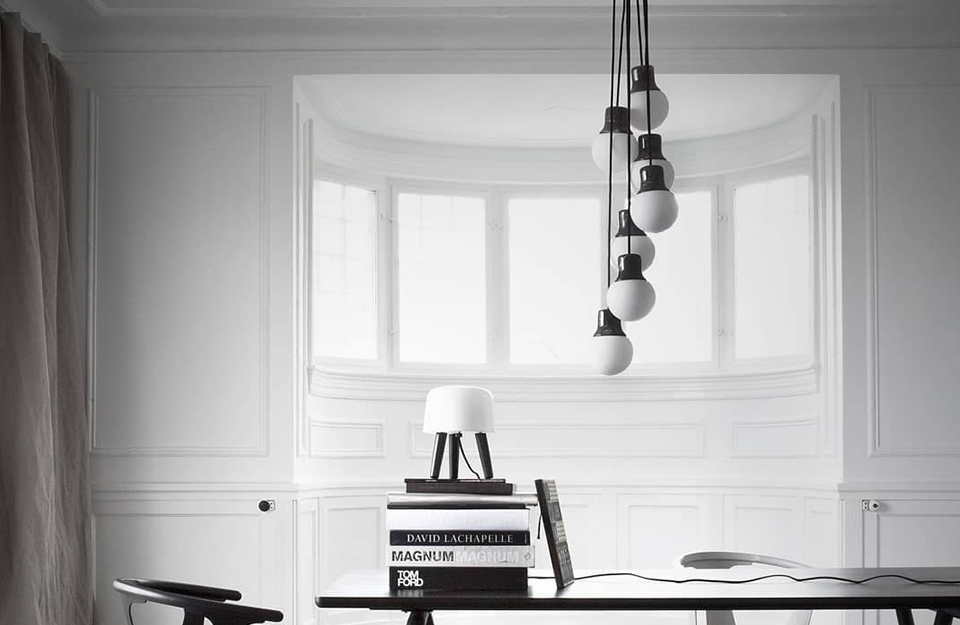 在巴黎、巴塞羅那和紐約等城市旅行時(shí),Norm Architects 的 Kasper R?nn 和 Jonas Bjerre-Poulsen 被路燈迷住了:獨(dú)特的鑄鐵頂部,底部有一個(gè)半透明的玻璃球?;毓ぷ魇液螅琄asper 和 Jonas 將路燈從原來(lái)的用途中分離出來(lái),并轉(zhuǎn)移了材料的形狀和組合,以設(shè)計(jì)出一款出色的室內(nèi)吊燈——Mass Light。