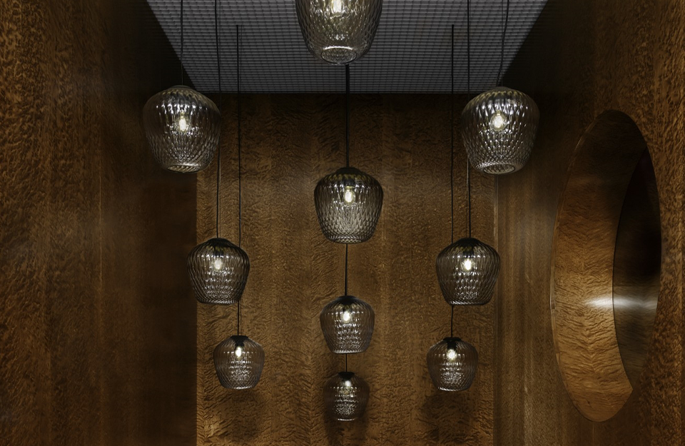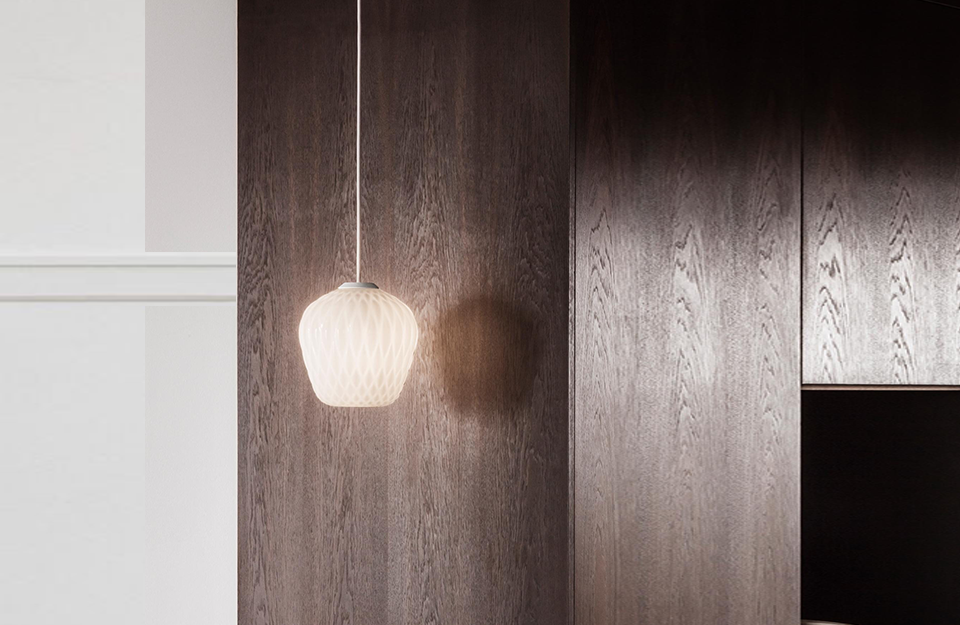 設計師塞繆爾·威爾金森(Samuel Wilkinson)在試驗光的反射和折射時發(fā)現,當光源被壓花玻璃包圍時,會產生一種美麗的絎縫效果,他由此設計了 Blown 系列。
