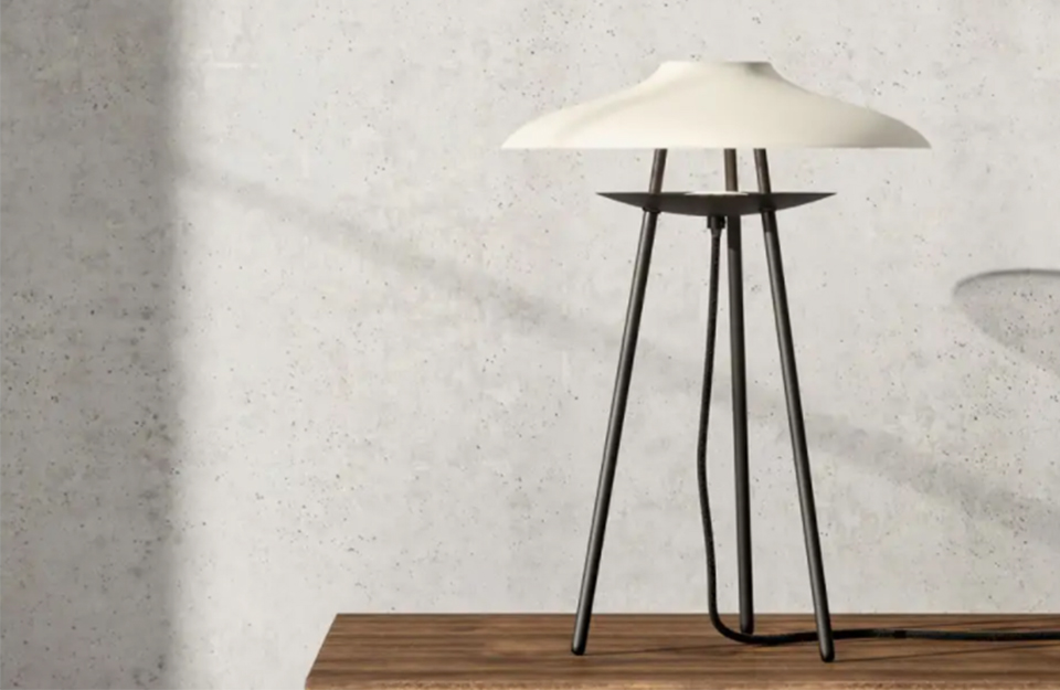 “詩意和工業(yè)主題結(jié)合在精致和令人回味的燈具系列Haro中,Haro是以日語中的‘光暈’命名的。”在纖細(xì)的磨砂粉末涂層金屬底座上,精致的浮動乳白色玻璃陰影在整個系列中重復(fù)出現(xiàn),為多種用途創(chuàng)造了發(fā)光的環(huán)境光層。