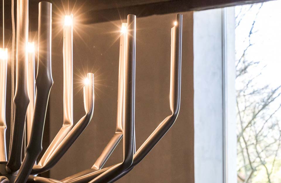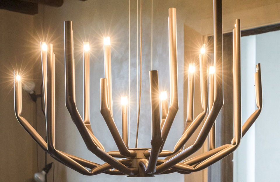 To_Be是由機(jī)械彎曲的鐵管制成的吊燈,有6、12或18臂,帶有G9燈泡燈座,具有拋光和啞光白色漆面。它是一種在材料和工藝上都具有強(qiáng)烈工業(yè)靈感的枝形吊燈:它是從機(jī)械彎曲、激光切割和焊接粉碎和變形的管子中獲得的。影響最小,但影響很大。燈泡燈不包括在包裝中。