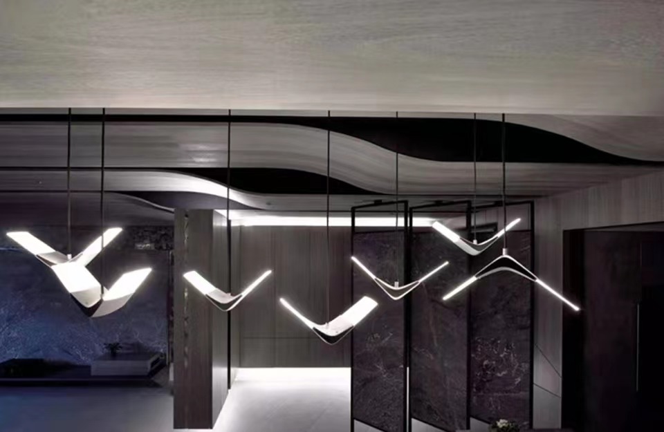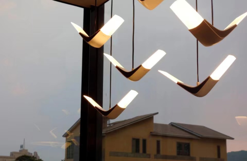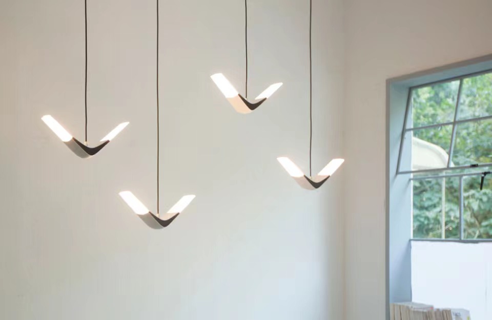 自在飛翔吊燈將自然美學(xué)帶入現(xiàn)代生活,特殊的絲紋發(fā)光燈板散發(fā)著舒適的光,優(yōu)雅的雙翼如飛鳥翱翔,在空間中創(chuàng)造一幅美麗的景,為緊湊而忙碌的生活提供一個(gè)放松與休憩的角落,一種身心的自在。自在飛翔I&II,上下兩種不同的姿態(tài),一盞孤傲而純粹,多盞混搭壯觀如海鷗群飛,穿透空間展現(xiàn)獨(dú)特景致,劃出美麗天際線。