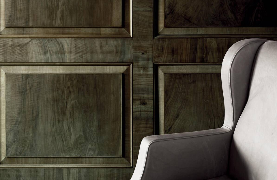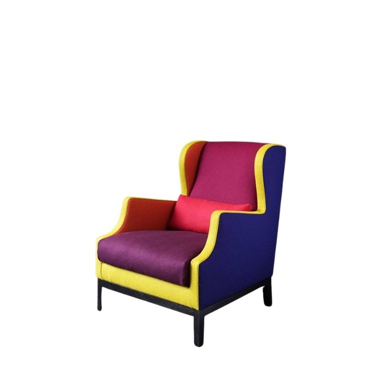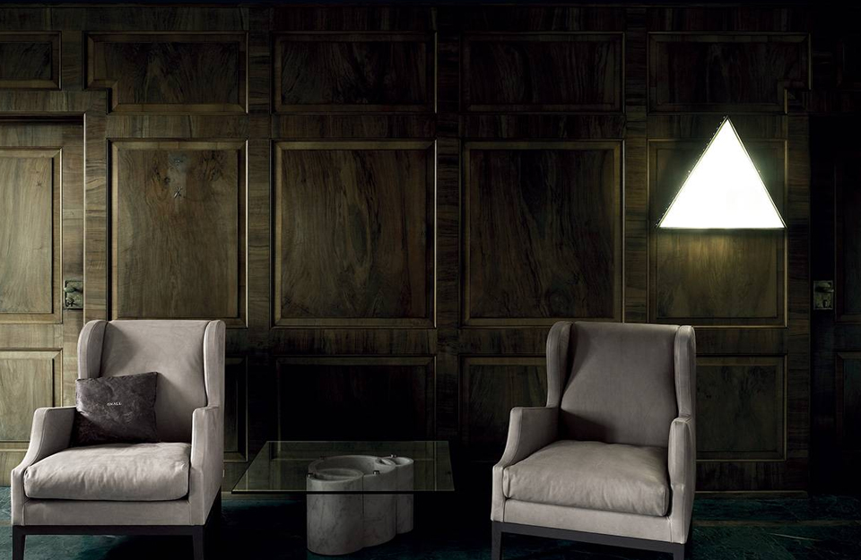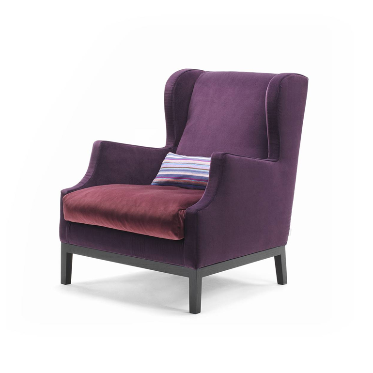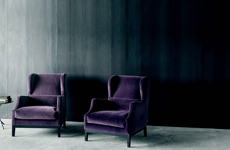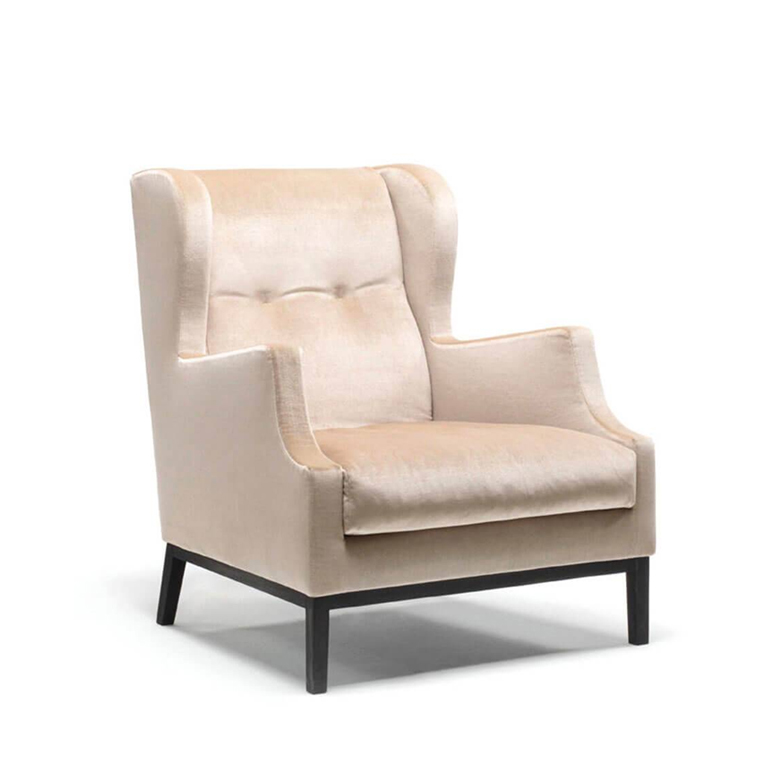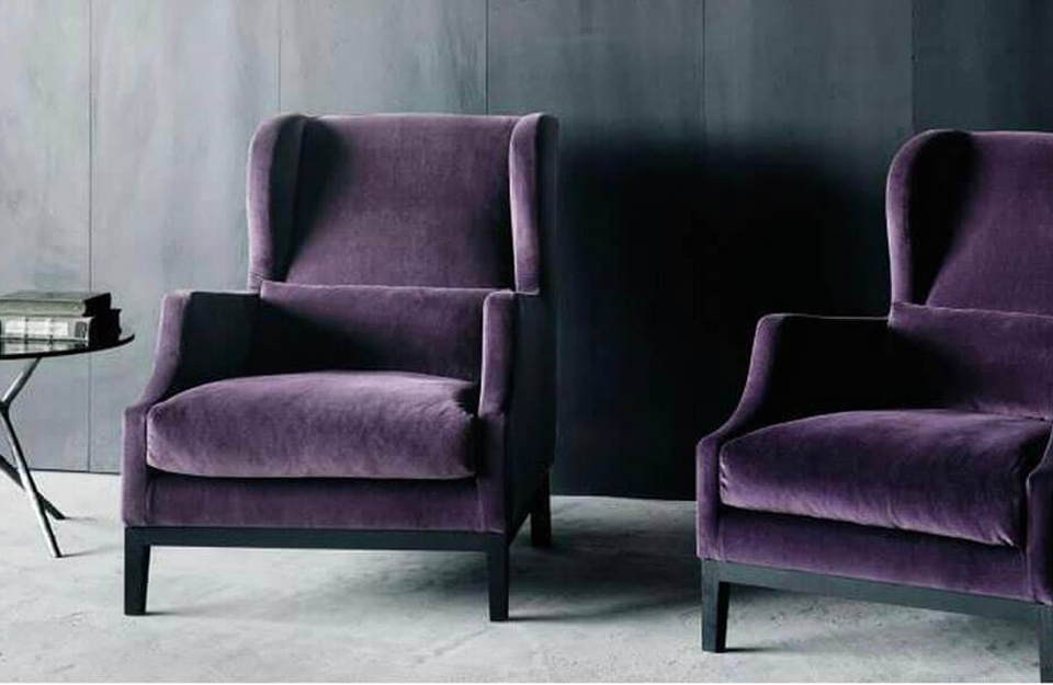 扶手椅,框架為楊木和松木膠合板。交叉編織、涂層橡膠彈性帶支撐。不同密度聚氨酯泡沫塑料框架填充物。覆蓋在針刺、樹脂化、無紡布聚酯纖維上,粘合在聚酰胺天鵝絨背襯上,100%聚醚熱粘合在聚酰胺天鵝絨背襯上。預先清洗和消毒的鵝絨座墊,縫合成單獨的