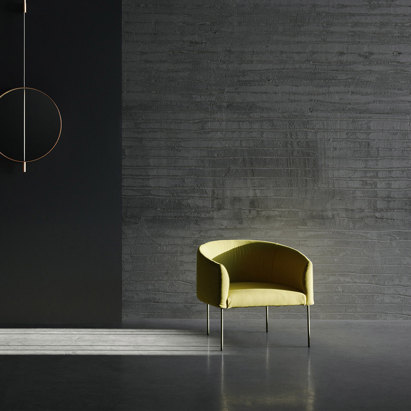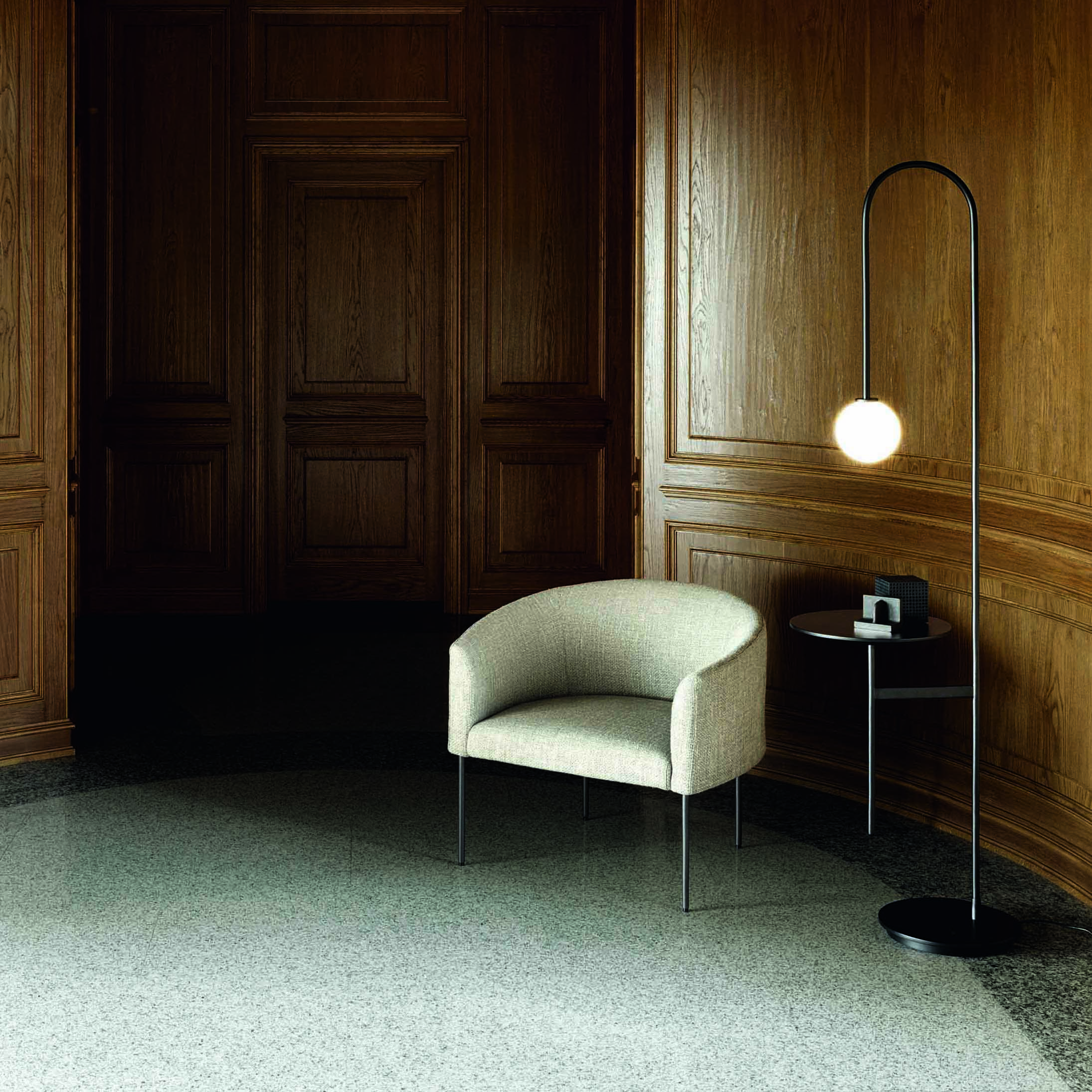 Era 扶手椅的特點是無可挑剔的比例,平衡了靠背、座椅和扶手的曲線與金屬結構的線性:風格化的腿,結合了雕塑和流動性。