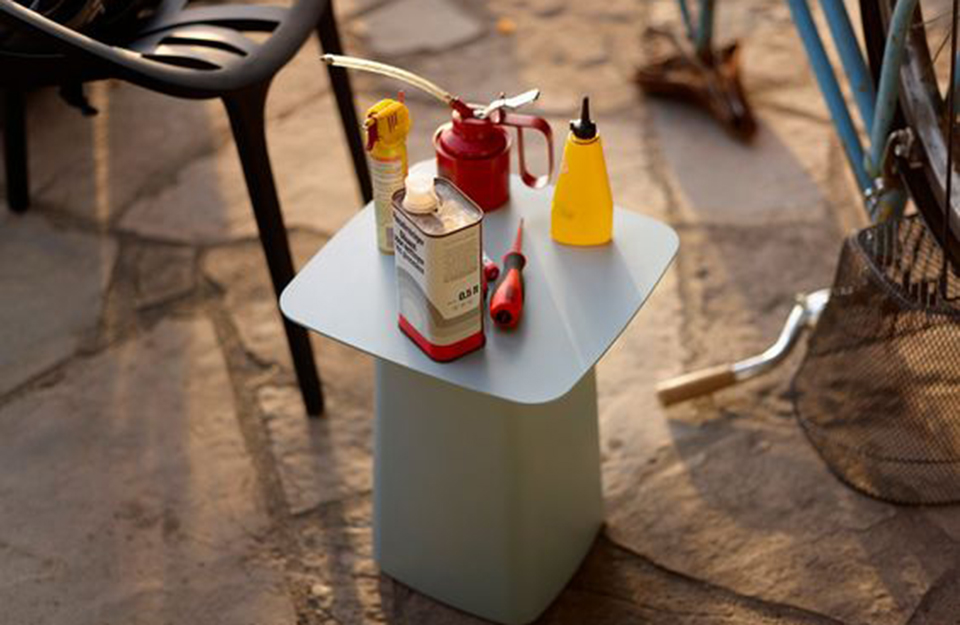 戶外版的金屬邊桌由Ronan和Erwan Bouroullec設(shè)計,具有啞光粉末涂層,與高度拋光的室內(nèi)版相比,有單獨的顏色范圍。薄的桌面和基座狀的底座的組合產(chǎn)生了一個吸引人的對比。