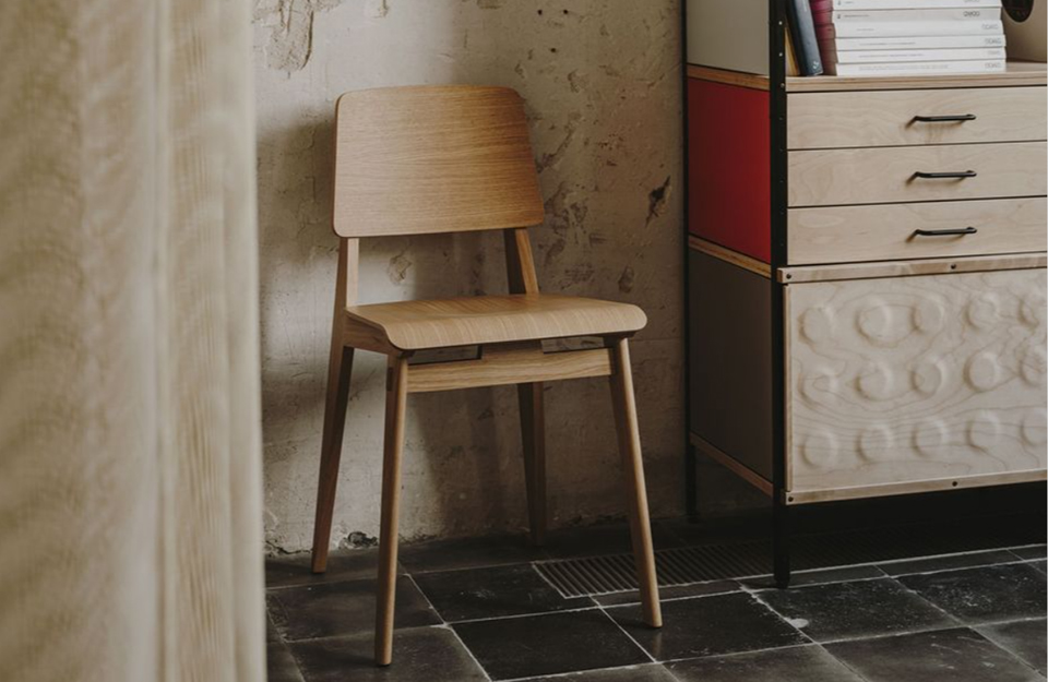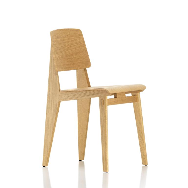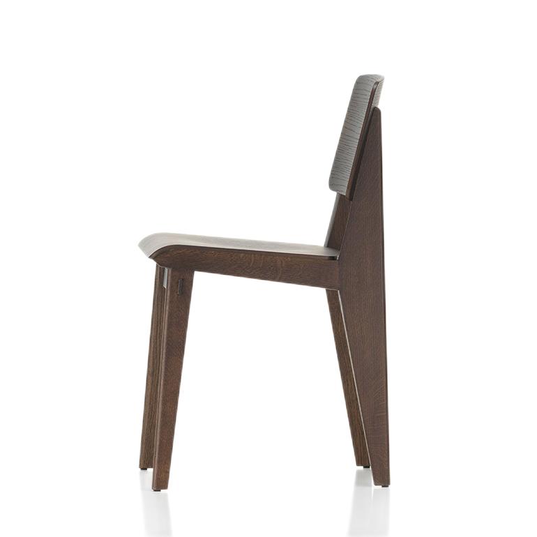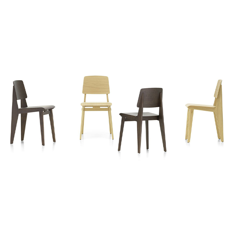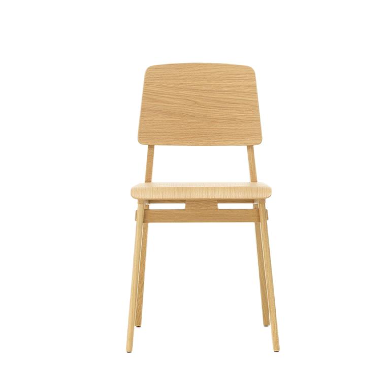 Chaise Tout Bois 是法國“建筑師”和設(shè)計(jì)師 Jean Prouvé 唯一完全用木頭制成的椅子。該設(shè)計(jì)與普魯韋著名的標(biāo)準(zhǔn)椅子非常相似,但由于第二次世界大戰(zhàn)期間金屬稀缺,木頭取代了金屬底座。Chaise Tout Bois 的形式表達(dá)了 Prouvé 的意圖,即在座椅和靠背之間的過渡點(diǎn)提供額外的強(qiáng)度,人體解剖結(jié)構(gòu)的負(fù)載重量最大。后框架部分的輪廓——后腿和靠背支撐——參考了這種負(fù)載轉(zhuǎn)移,是 Prouvé 家具和建筑設(shè)計(jì)的典型特征。