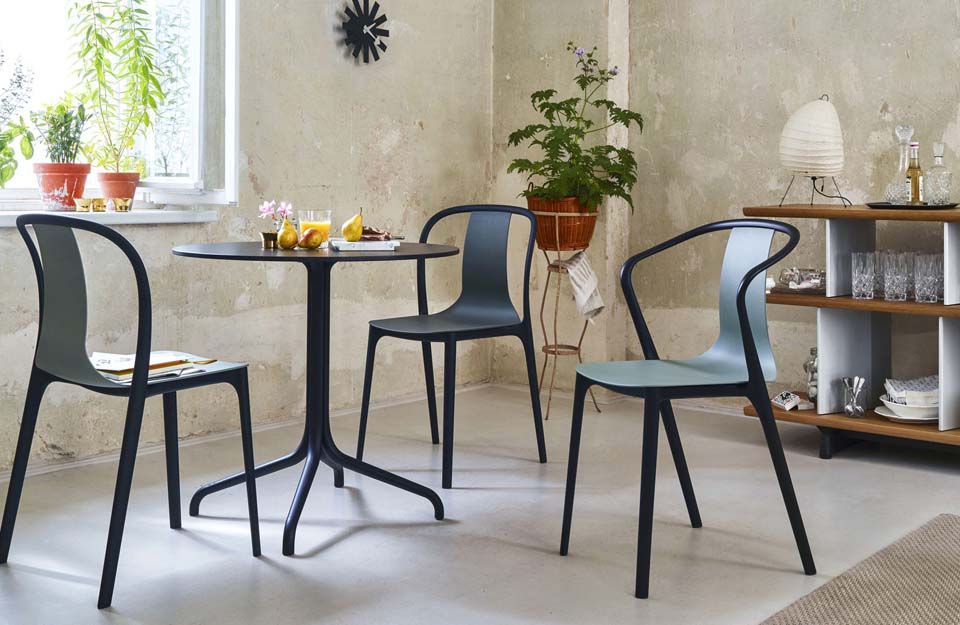 Belleville 椅子由兩個主要部件組成——一個座椅外殼和一個由塑料制成的細長黑色結(jié)構(gòu)框架,帶或不帶扶手。座椅外殼從寬座椅到窄靠背逐漸變細,為 Belleville 椅子賦予了獨特的身份:模壓膠合板飾面外殼使它看起來像一把木椅。