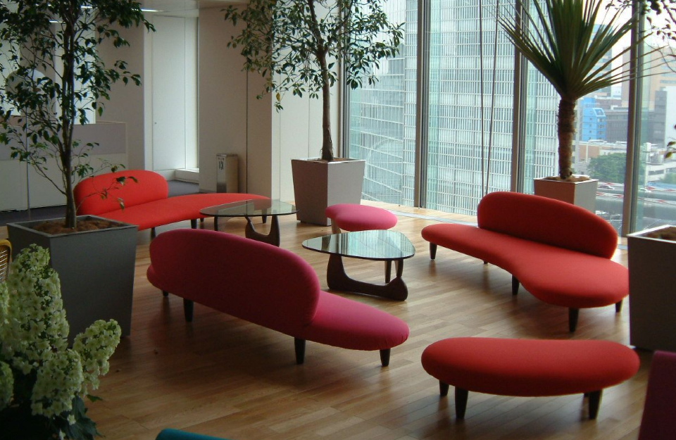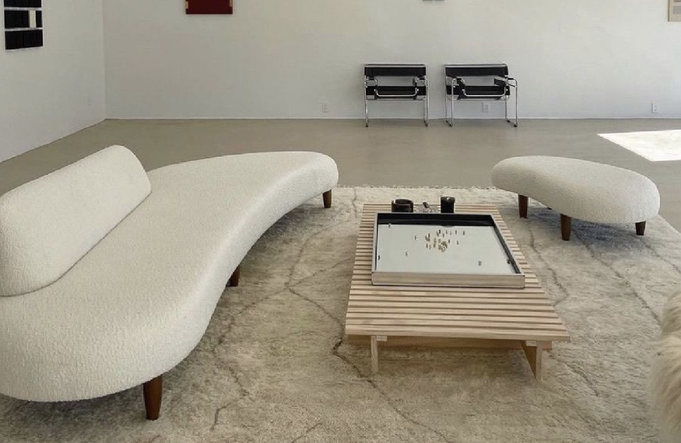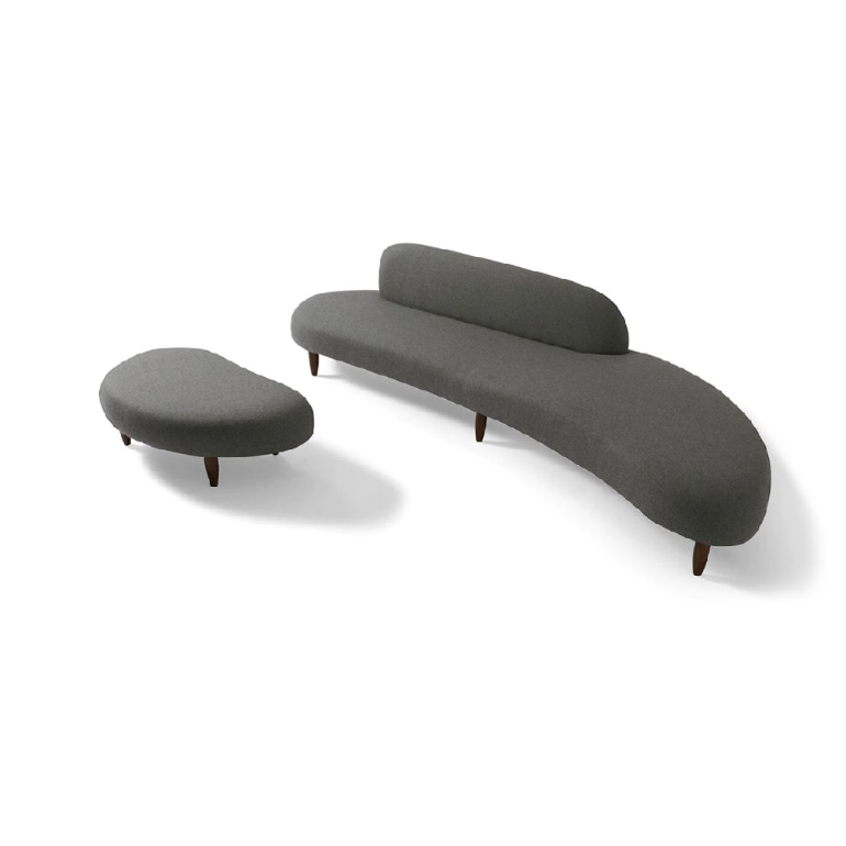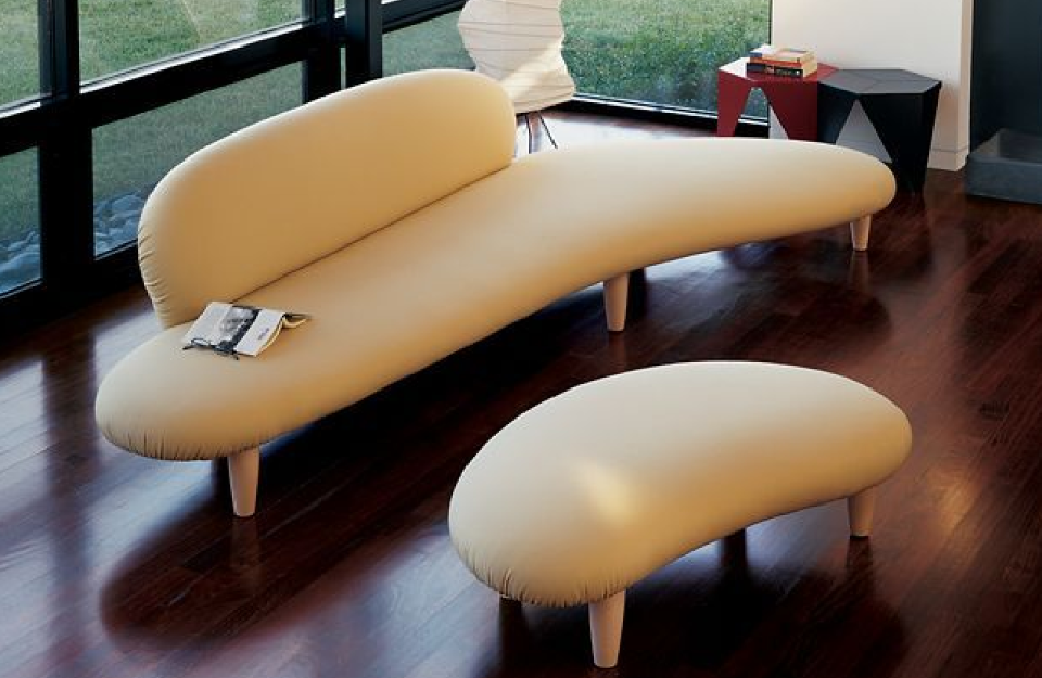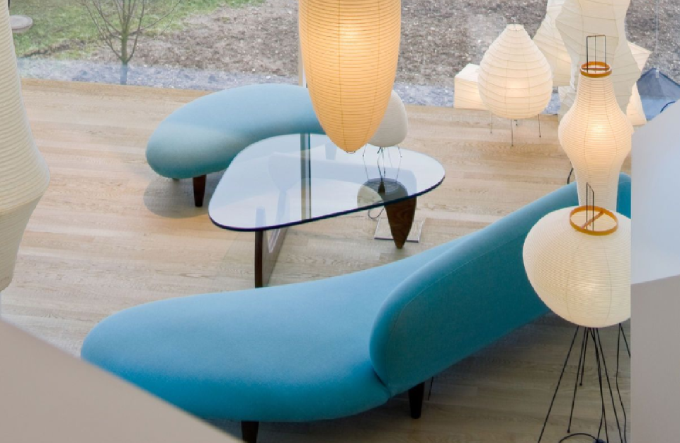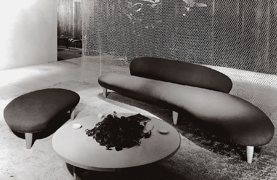Noguchi設(shè)計的雕塑品質(zhì)體現(xiàn)在自由形式的沙發(fā)上:它與同一時期的其他設(shè)計完全不同,與奧斯曼帝國結(jié)合在一起,就像一個由扁平、圓形的河石組成的放大雕塑。纖細的有機形體流暢優(yōu)美。Noguchi通過薄而舒適的室內(nèi)裝潢和自然顏色的面料選擇,強調(diào)了元素的輕盈。