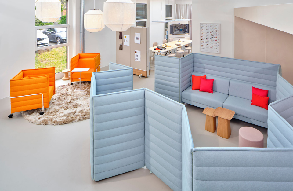 Alcove 產(chǎn)品線背后的基本概念——?jiǎng)?chuàng)造庇護(hù)所和隱居之地——在 Alcove 高背沙發(fā)中尤為明顯。在 Alcove Highback Sofa 的高側(cè)面板和背面板內(nèi),就座者在視覺和聽覺上都與周圍環(huán)境隔絕。當(dāng)兩張沙發(fā)彼此相對(duì)放置以形成“房間中的房間”時(shí),這種效果更加明顯。