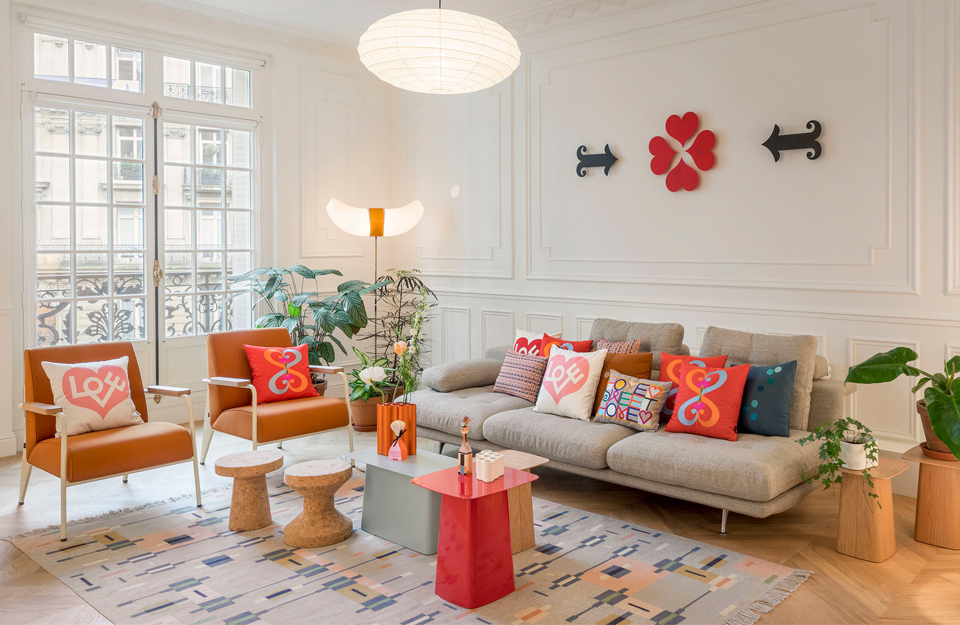 大尺寸沙發(fā)元素的簡(jiǎn)潔線條和幾何形狀創(chuàng)造了一個(gè)寬敞的坐或躺平臺(tái)。盡管比例很大,Grand Sofà 卻擁有纖細(xì)的外形:纖巧的織物覆蓋的車身采用雙角度設(shè)計(jì),形成層疊式座椅、靠背和后窗臺(tái)。座椅表面兩端下方和靠背后面的兩個(gè)點(diǎn)通過橋狀鋁基框架支撐身體,使沙發(fā)看起來漂浮在地板上方。座椅元素在側(cè)面是開放的,這強(qiáng)調(diào)了 Grand Sofà 的水平面。消費(fèi)者可以選擇全長(zhǎng)靠背或縮短版本。這使得有可能產(chǎn)生具有間隙和視點(diǎn)的大型座椅布置 - 具有幾乎地形特征的沙發(fā)景觀,傳達(dá)了輕盈和可變性的表達(dá)。