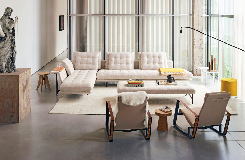Grand Sof à( 2017 )是 Antonio Cit ter io 對(duì)奢華舒適與當(dāng)代設(shè)計(jì)的詮釋。設(shè)計(jì)師對(duì)輕盈和優(yōu)雅的意大利天賦與瑞士公司 Vitra 的商標(biāo)質(zhì)量和精確度相結(jié)合。