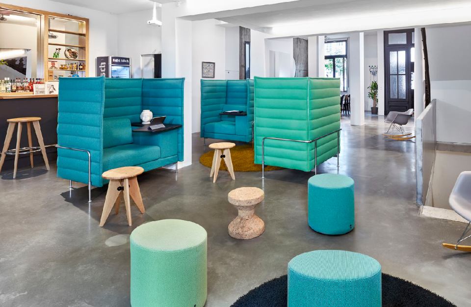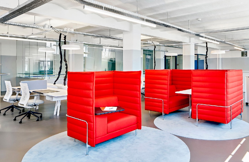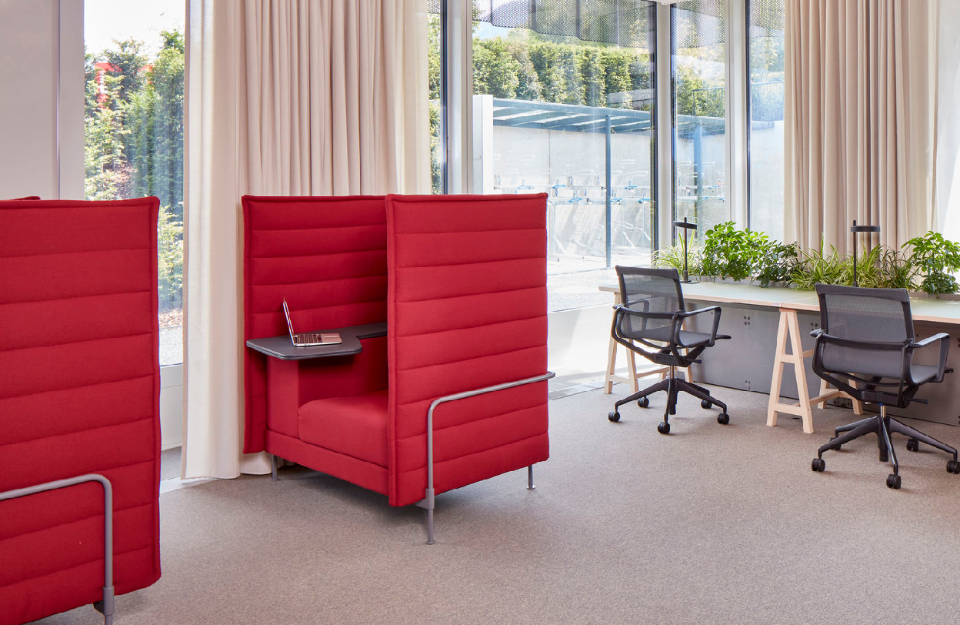 Alcove和Alcove Plus也非常適合混合配置,將結構引入開放式布局及其工作流程。由于這些結構的靈活設計,它們可以快速、輕松地適應新的需求。絎縫面料覆蓋的面板營造出休閑舒適和安全感,同時有效吸收環(huán)境噪音。