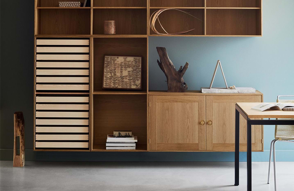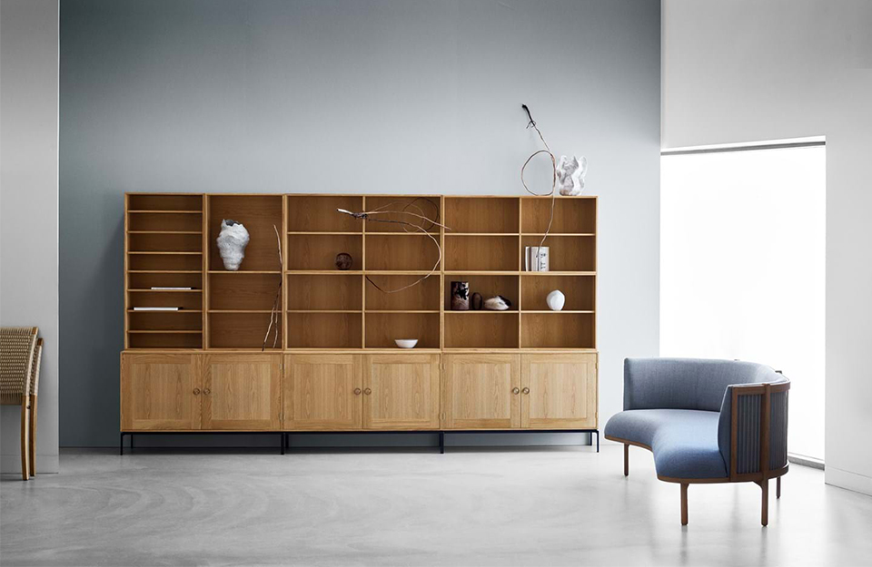 該作品由Preben Fabricius和J?rgen kasolm于1963年設(shè)計,是對功能極簡設(shè)計的共同興趣的結(jié)果,專注于比例、手工制作的細節(jié)和自然材料。FK63書柜系統(tǒng)體現(xiàn)了設(shè)計師不妥協(xié)的設(shè)計方法,采用FSC?認證的(FSC C135991)實心橡木制作,涂油以突出木材的紋理和紋理。它以周到的細木工細節(jié)為特色,包括配有黃銅把手的全寬櫥柜和帶有可選滑動托盤的開放式貨架——兩者都是可定制的,以適應(yīng)不斷增長的收藏品。有壁掛式和獨立的版本,后者依賴于一個細長的粉末涂層金屬框架。